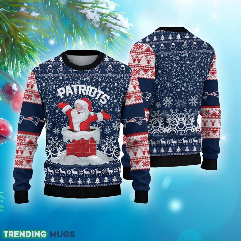 New England Patriots Printed Funny Santa Claus Show Team Spirit NFL Ugly Christmas Sweater – New England Patriots Printed Funny Santa Claus Show Team Spirit NFL Ugly Christmas Sweater