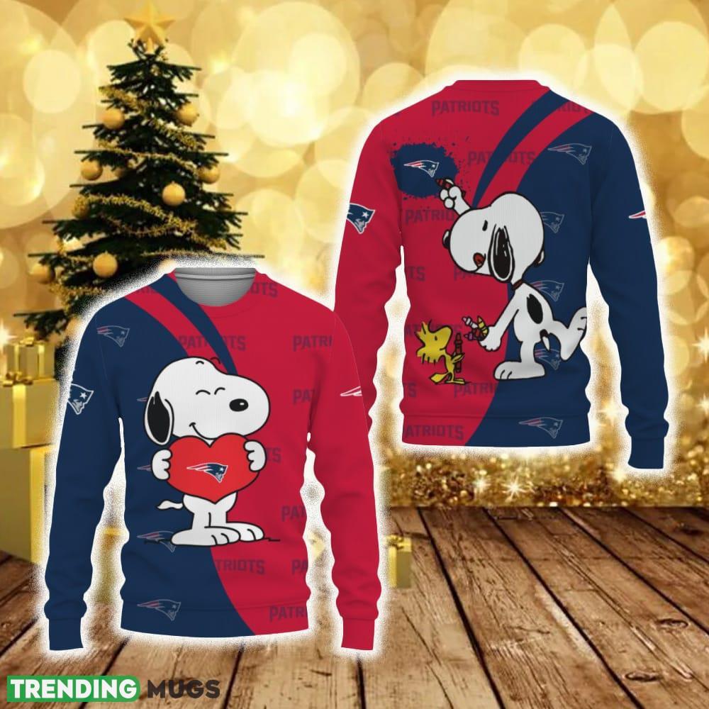 New England Patriots Snoopy Cute Heart American Sports Team Funny 3D Sweater For Men And Women Gift Christmas