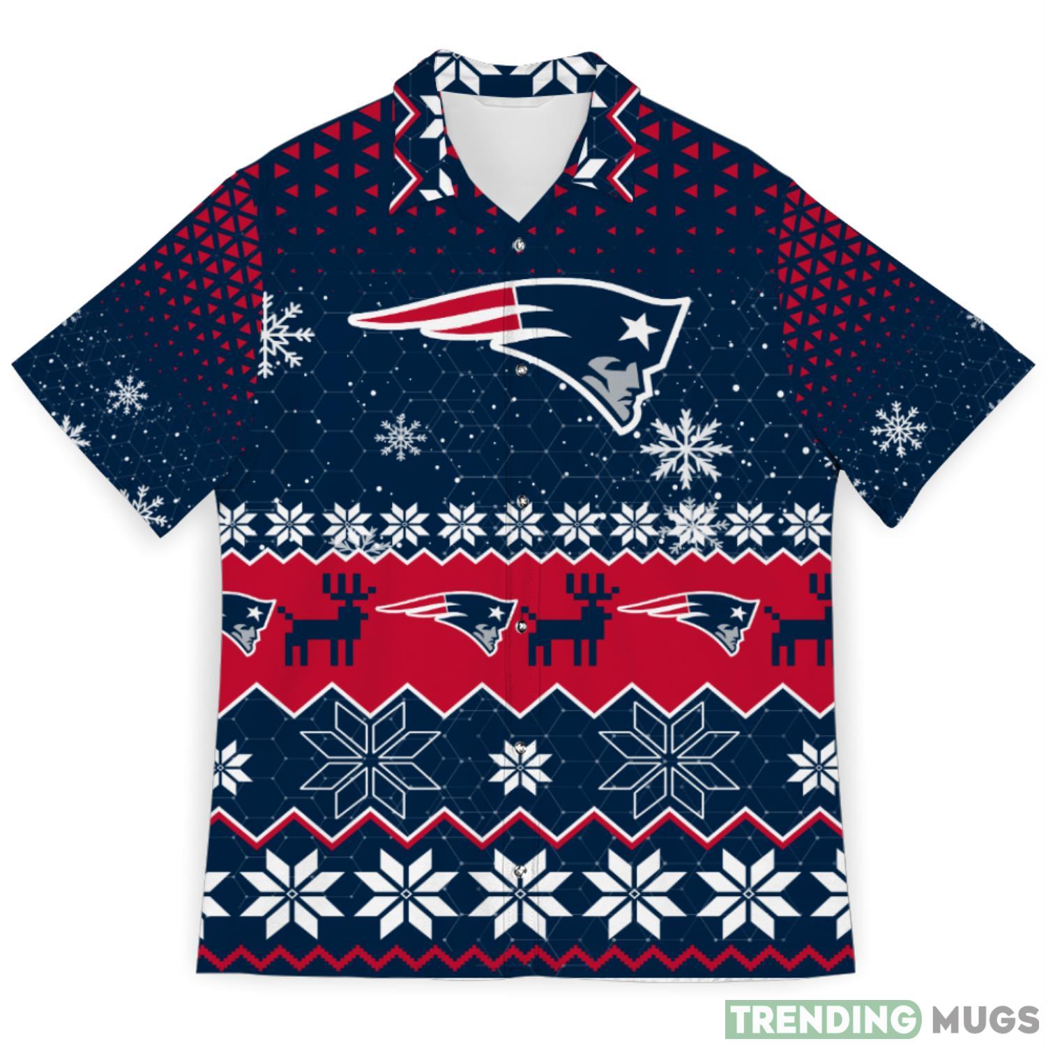 New England Patriots Snowflake Pattern 3D Hawaiian Shirt Christmas Gift Details: