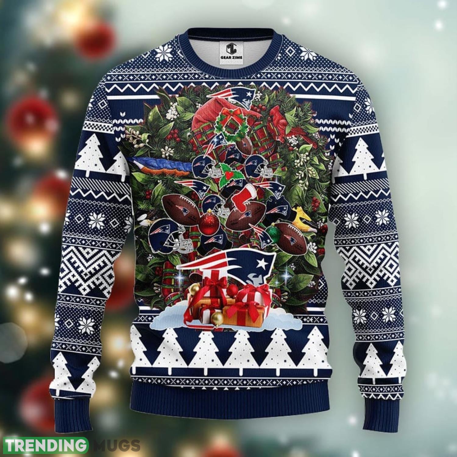 Featuring a vibrant and eye-catching design, this sweater showcases the iconic New England Patriots logo adorned with a festive Christmas tree pattern. It’s the ultimate combination of team spirit and holiday cheer.