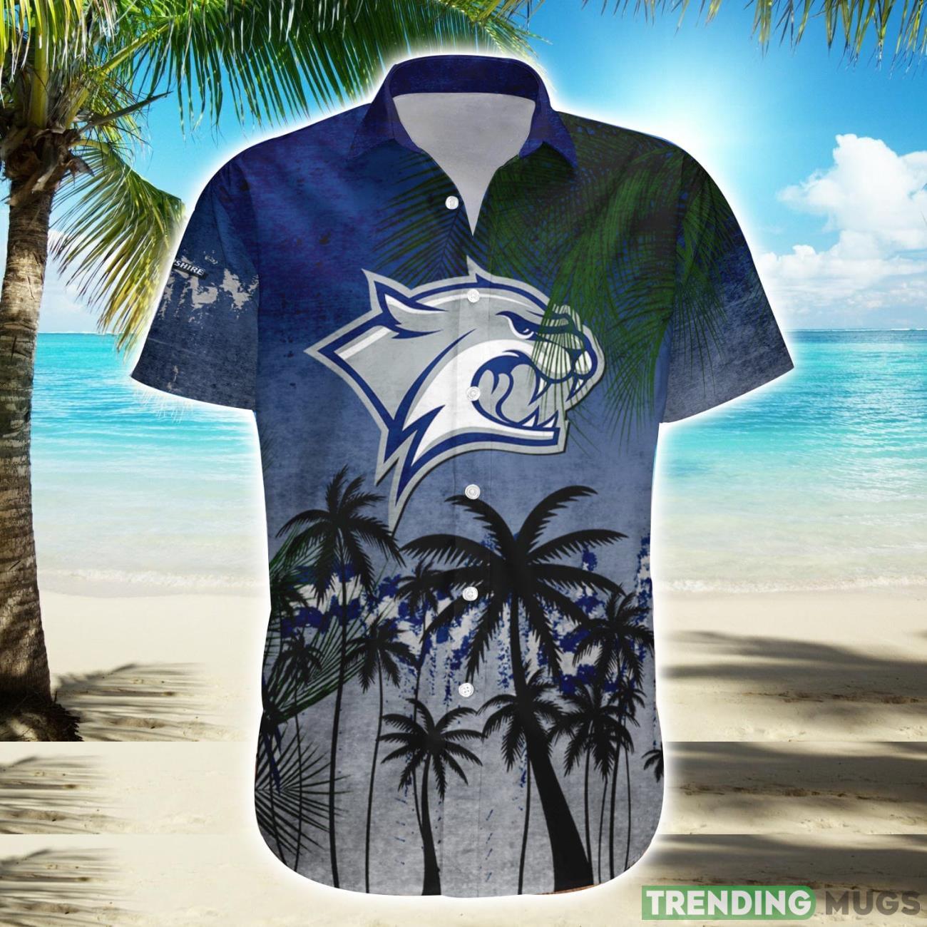 New Hampshire Wildcats Hawaiian Shirt Summer Gift Coconut Tree Tropical Grunge Pattern For NCAA Fans Details: