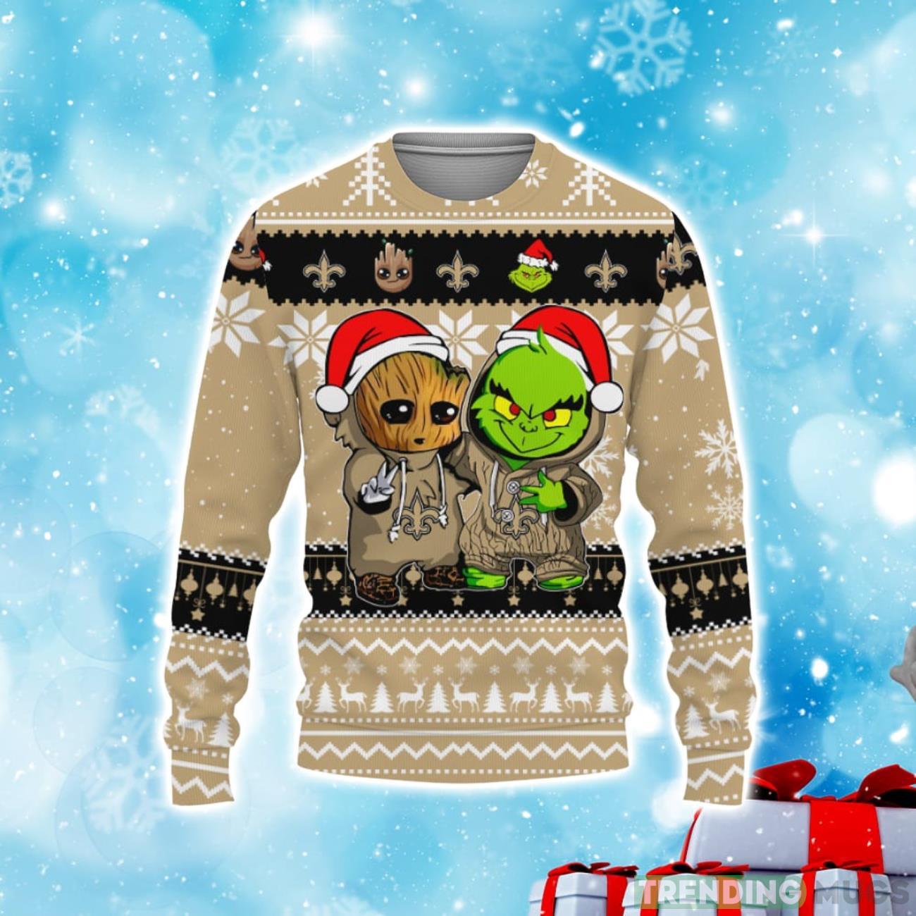 New Orleans Saints Baby Groot And Grinch Best Friends Football American Ugly Christmas Sweater Informations: