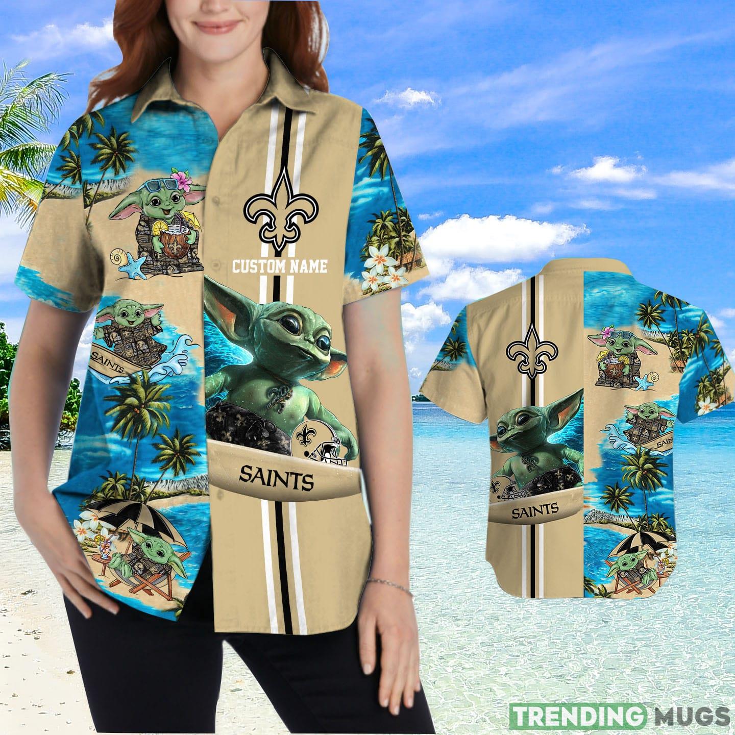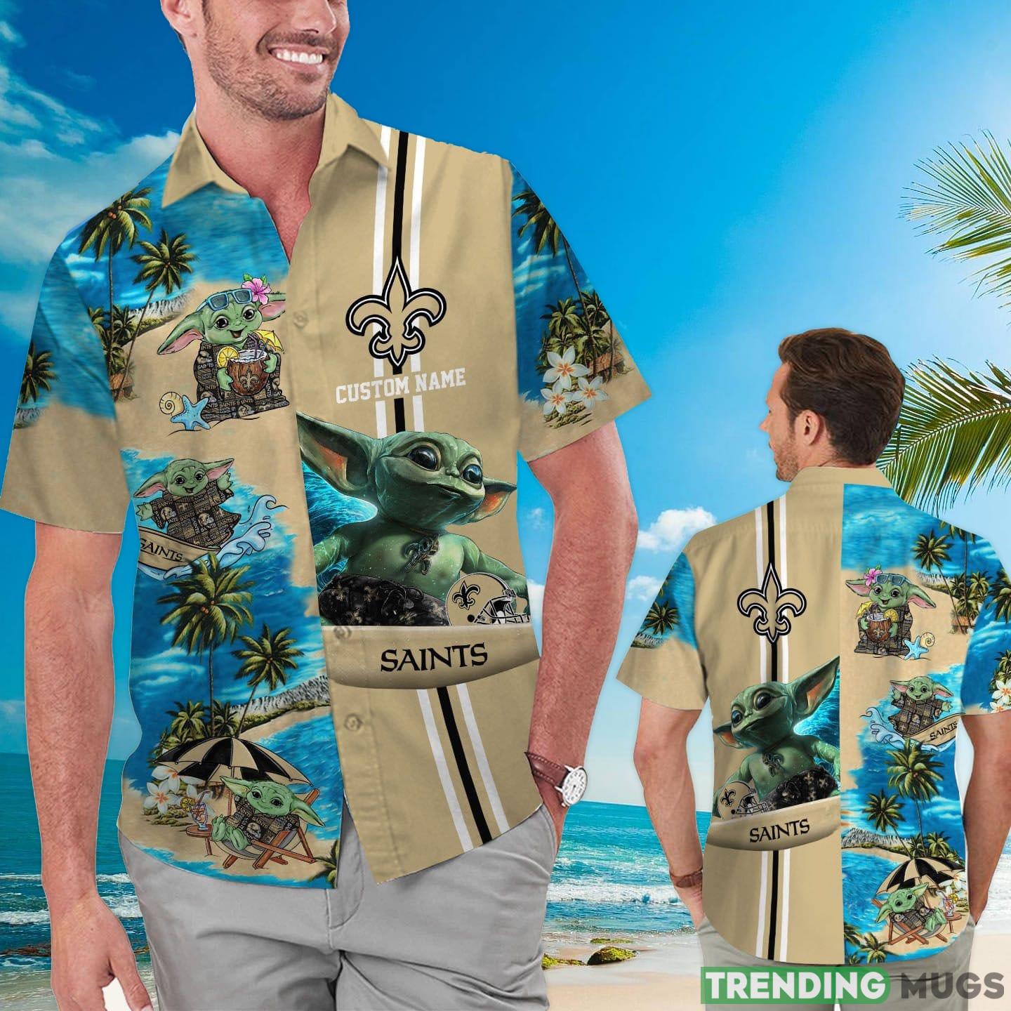 New Orleans Saints Baby Yoda Custom Name Hawaiian Shirt Product Photo 1