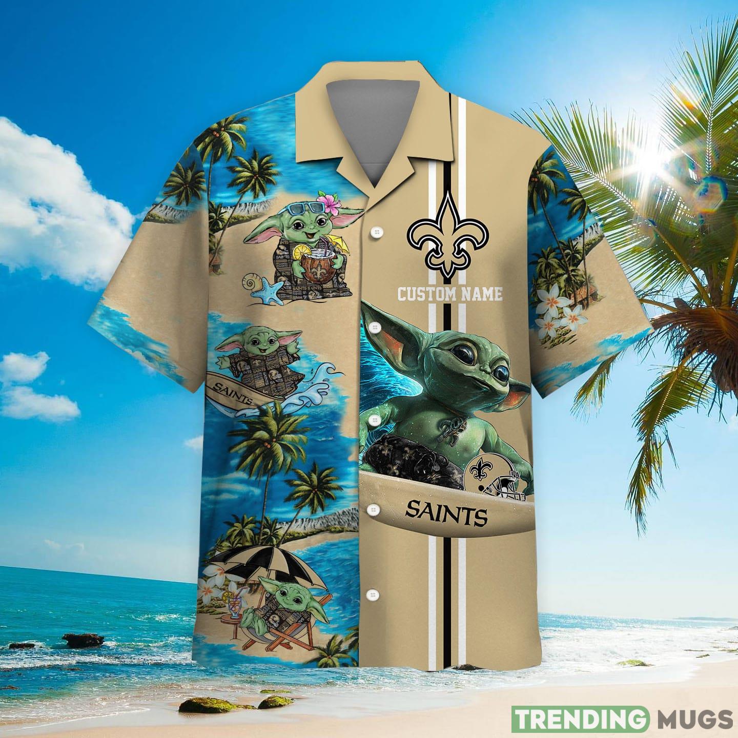 New Orleans Saints Baby Yoda Custom Name Hawaiian Shirt