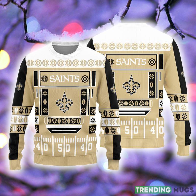 New Orleans Saints Christmas Ball Snowfalke Pattern Knitted Ugly Christmas Sweater AOP Gift For Men And Women Informations: