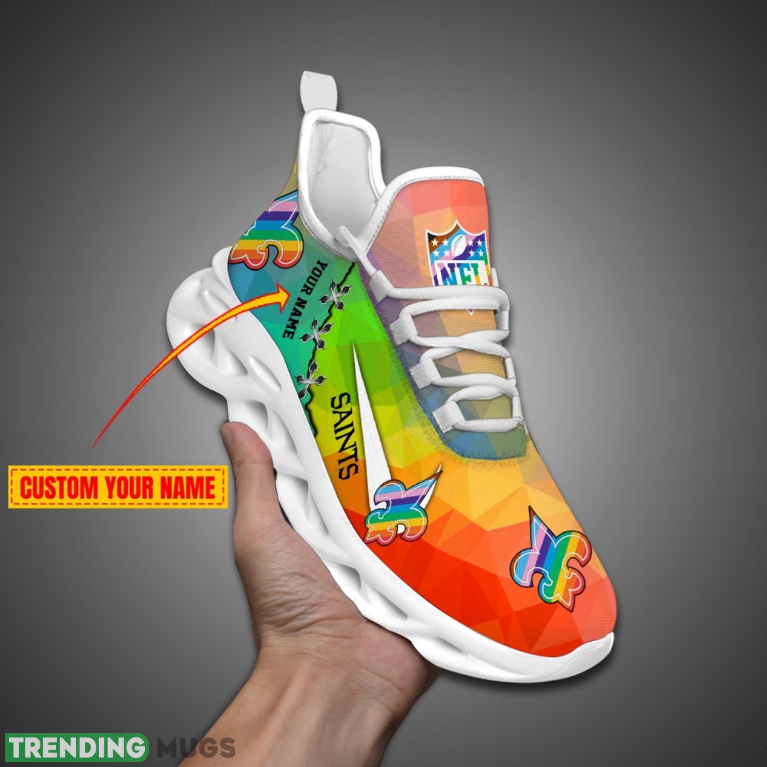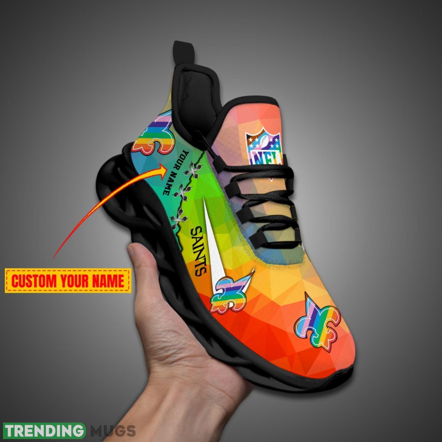 Stand out in the crowd with these New Orleans Saints Colorful Sneakers NFL Max Soul Shoes For Fans Custom Name! Show off your team spirit with these vibrant and stylish sneakers featuring the iconic colors of the New Orleans Saints. Personalize them with your name to make them truly one-of-a-kind. Whether you’re heading to a game or just out and about, these shoes are sure to turn heads and make a statement. Get your hands on these must-have sneakers and step up your fan game today!