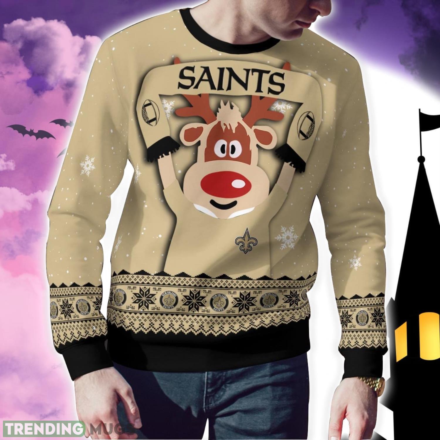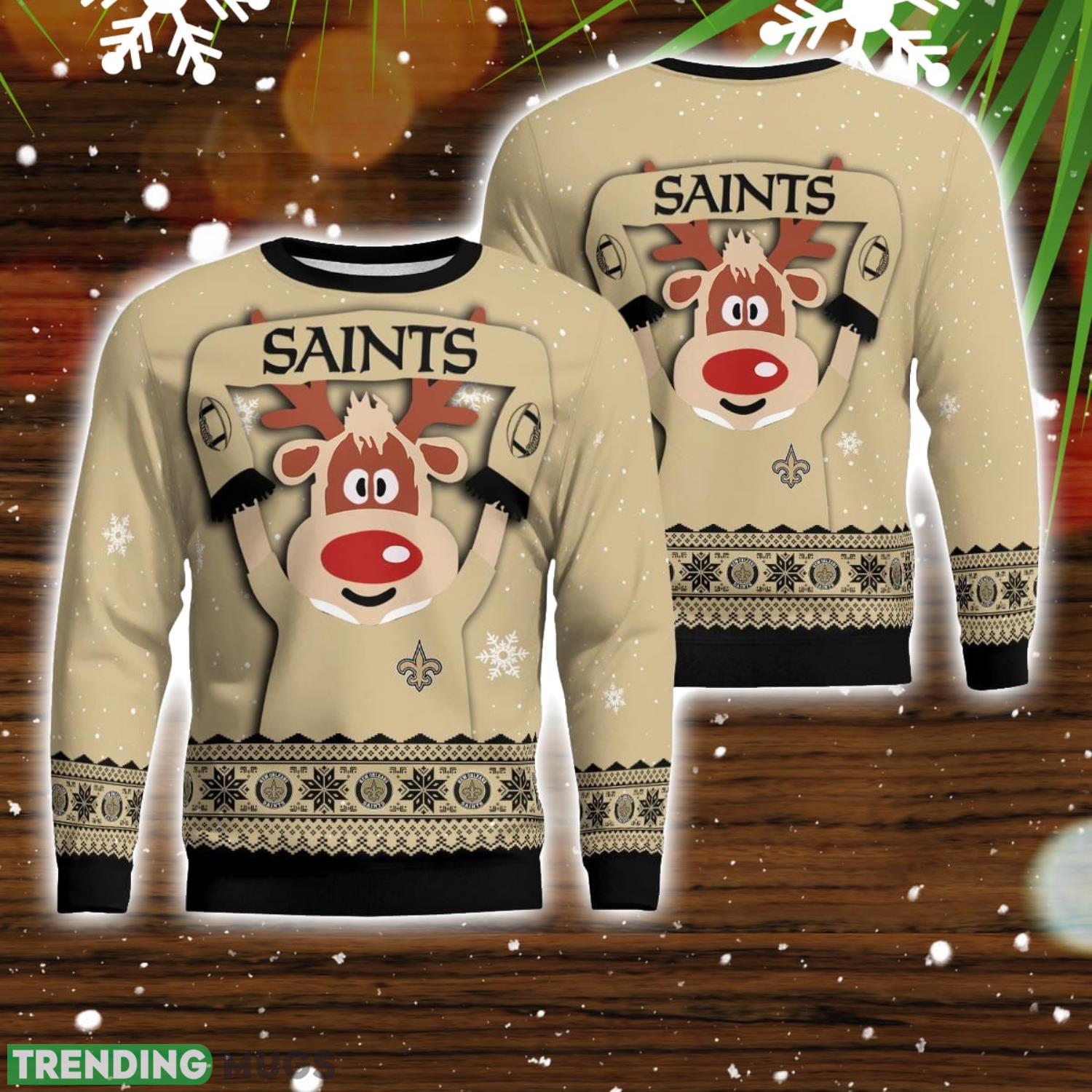 Get ready to show off your New Orleans Saints pride in the most festive way possible with our Cute Reindeer Ugly Christmas Sweater! This sweater is the perfect addition to your holiday wardrobe, with its unique design featuring the iconic New Orleans Saints logo and a cute reindeer motif. Made with high-quality materials, this sweater is not only comfortable but also durable, ensuring that you’ll be rocking the Saints spirit for many Christmas parties to come. Whether you’re cheering on your favorite team or spreading holiday cheer, this sweater is the ultimate Christmas party gift for any die-hard New Orleans Saints fan. Don’t miss out on the opportunity to be the star of the show this holiday season with our New Orleans Saints Cute Reindeer Ugly Christmas Sweater!