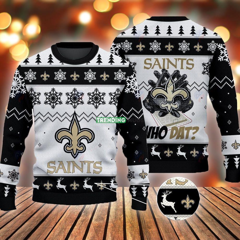 So why wait? Stand out from the crowd and spread some holiday cheer with our New Orleans Saints Football Gloves Pattern Knitted Xmas Black Sweater. Get yours today and celebrate the season in style!