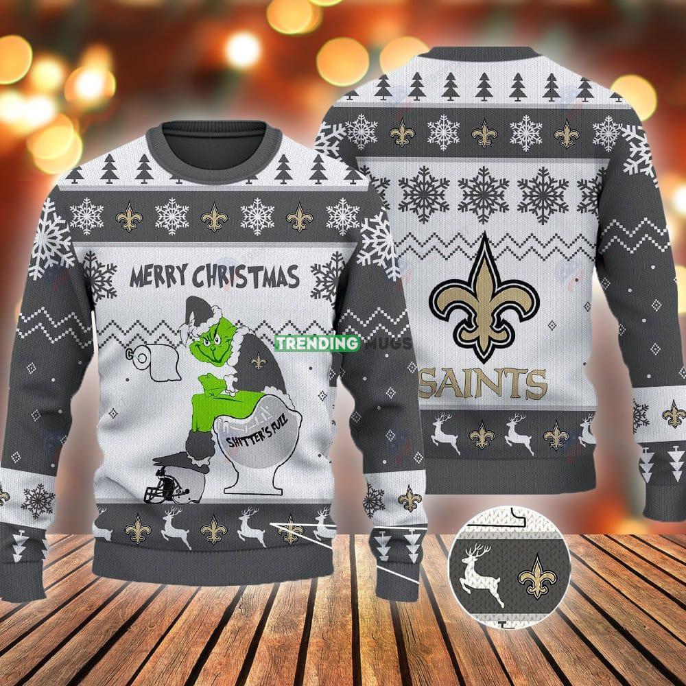 New Orleans Saints Grinch Shitter’s Full NFL Grey Ugly Christmas Sweater Informations: