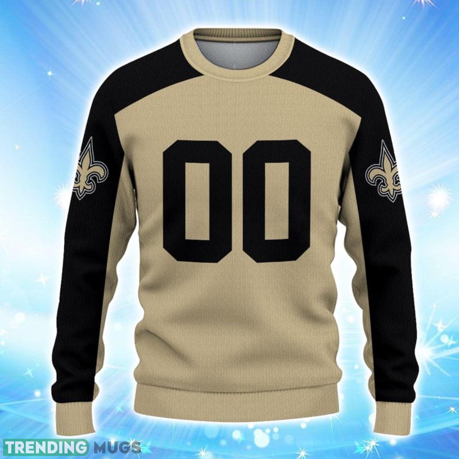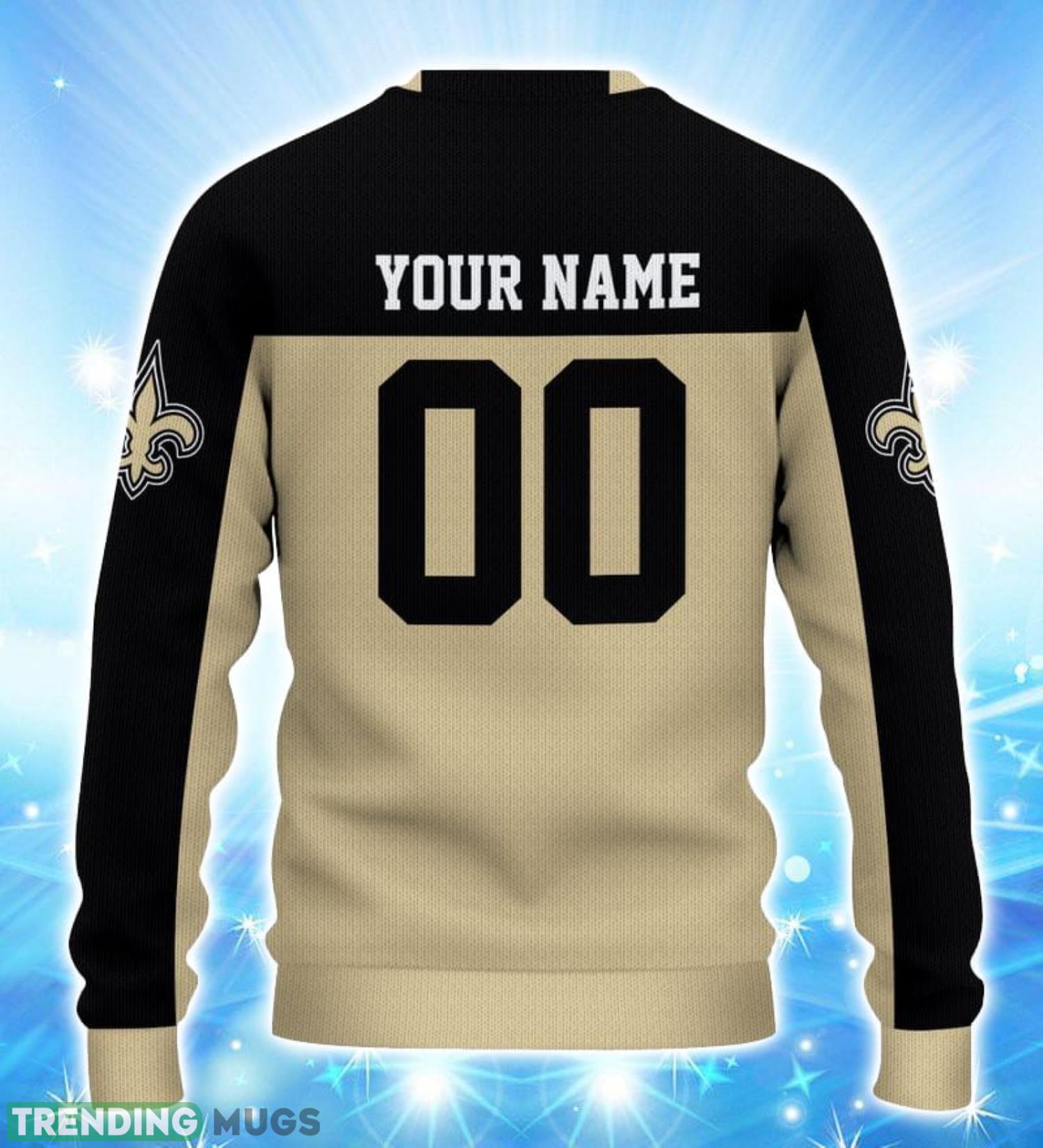 Crafted with the utmost attention to detail, this sweater features a unique 3D design that will make you stand out from the crowd. The iconic New Orleans Saints logo proudly adorns the front, showcasing your unwavering loyalty. But that’s not all – we’ve taken customization to a whole new level by offering the option to add your name and favorite player’s number to the back!