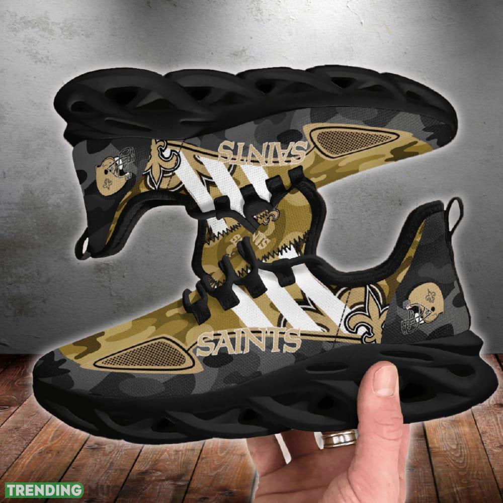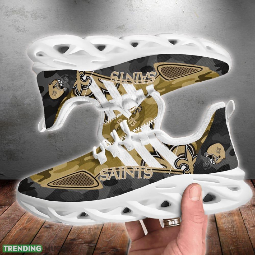 This New Orleans Saints Military Camouflage Streetwear Chunky Shoes New Max Soul Sneakers Men Gift is a breathable, lightweight, and comfortable casual outdoor shoe that has a unique design. It is made of a mesh fabric which makes it sweat absorbent and breathable, while the rubber bottom ensures traction, comfort, and durability. It is available in two colors: black or white sole. There are two styles of shoelace holes so you can choose your preference.