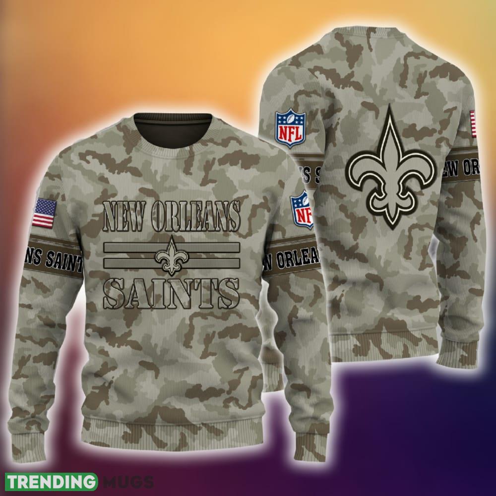 New Orleans Saints NFL Camo 3D Sweater Veteran Gift Holidays Ugly For Christmas – New Orleans Saints NFL Camo 3D Sweater Veteran Gift For Men And Women Christmas