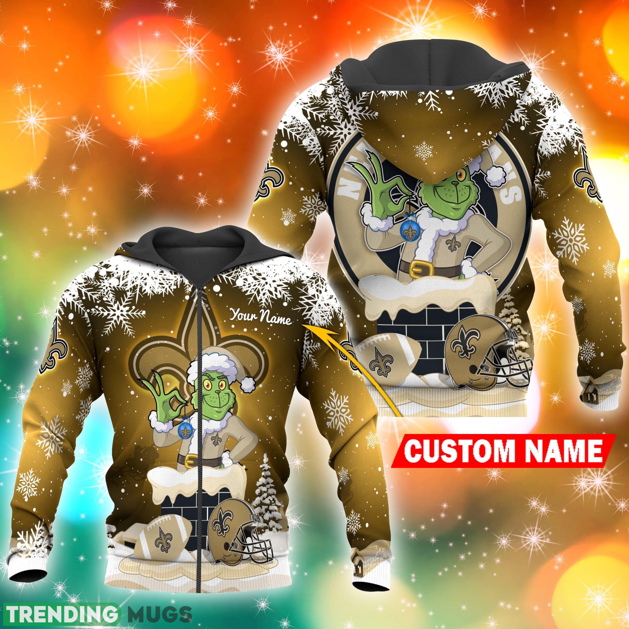 Whether you’re attending a game at the Mercedes-Benz Superdome or enjoying a festive gathering, this New Orleans Saints NFL Christmas Grinch in Chimney 3D Hoodie Pullover Prints Custom Name will make you the envy of every fan. So, don’t wait any longer – grab yours today and celebrate the holiday season in true Saints style!