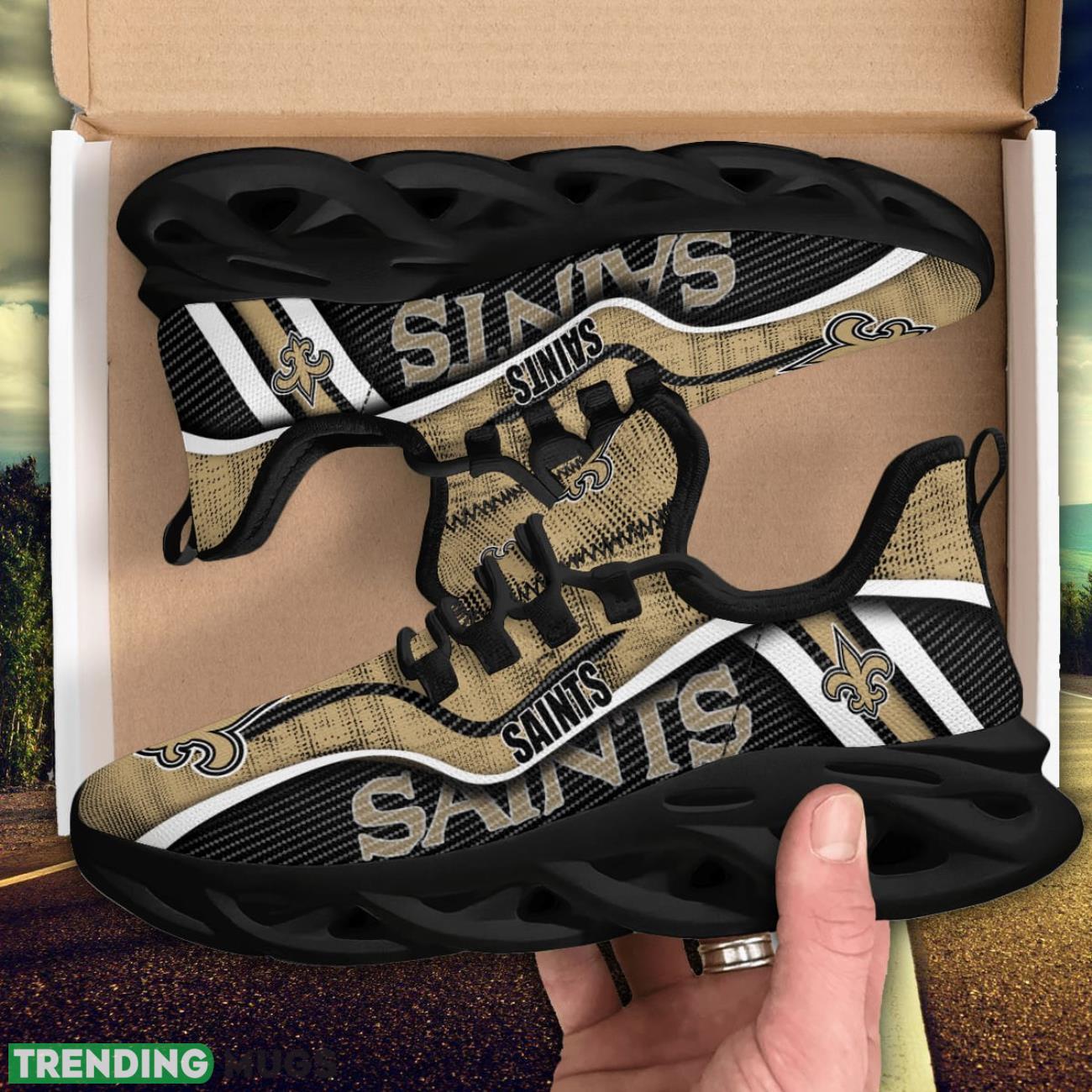 This New Orleans Saints Special Sport Shoes Max Soul Sneakers For Fans is a breathable, lightweight, and comfortable casual outdoor shoe that has a unique design. It is made of a mesh fabric which makes it sweat absorbent and breathable, while the rubber bottom ensures traction, comfort, and durability. It is available in two colors: black or white sole. There are two styles of shoelace holes so you can choose your preference.
