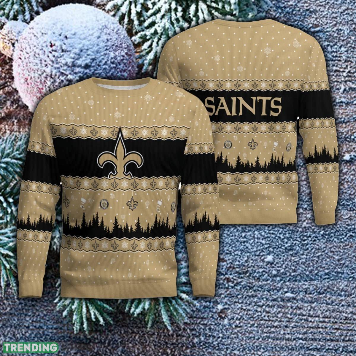 Get into the festive spirit and show off your love for the New Orleans Saints with our brand-new Ugly Christmas Sweaters for the 2023 season! Designed exclusively for die-hard fans like you, this sweater is the perfect holiday gift to spread team pride and cheer.