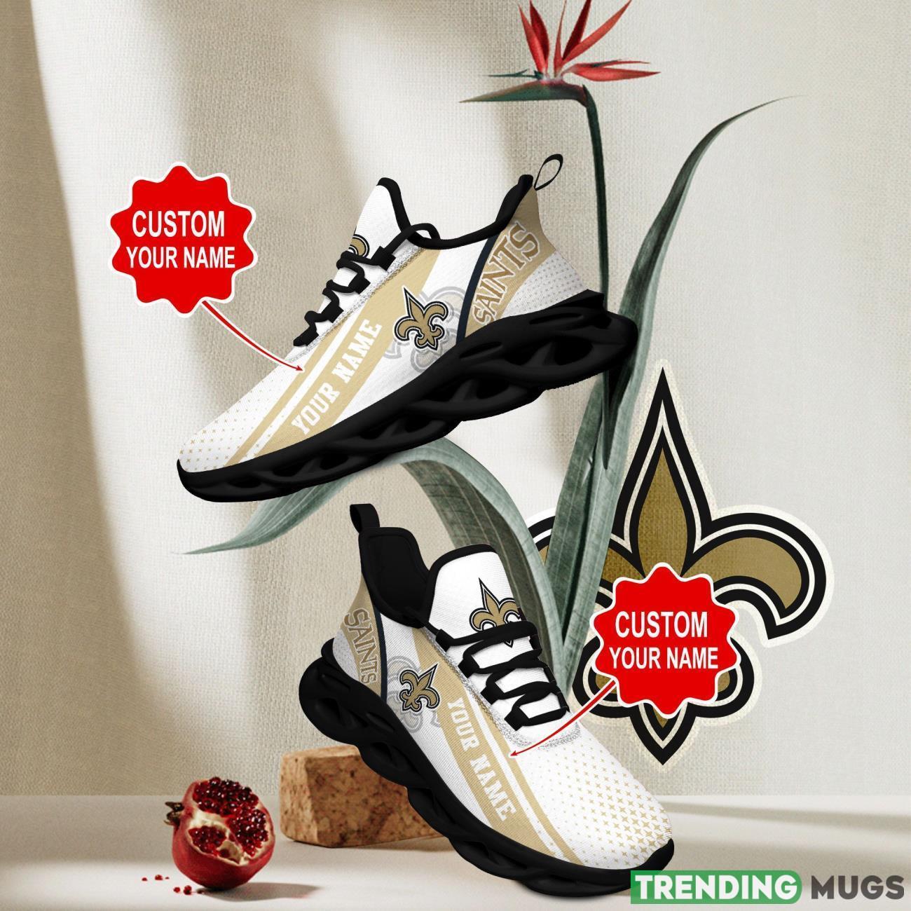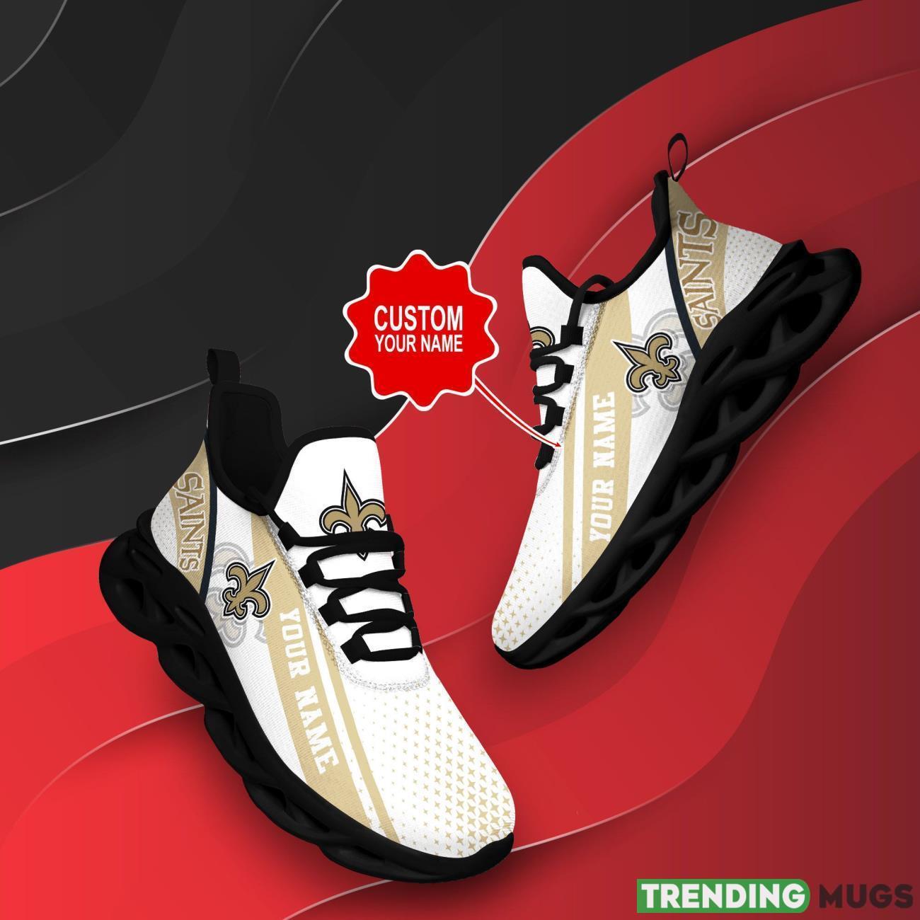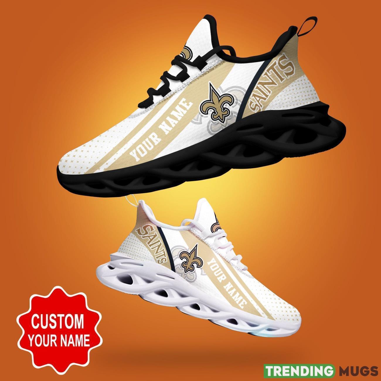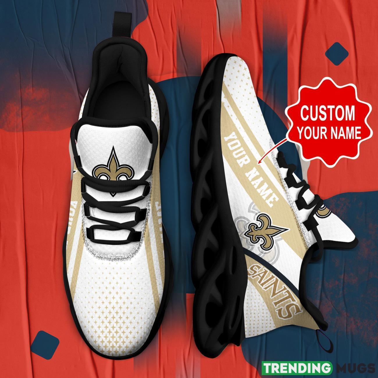 This New Orleans SaintsMax Soul Shoes Football Over Shoes For Men Women is a breathable, lightweight, and comfortable casual outdoor shoe that has a unique design. It is made of a mesh fabric which makes it sweat absorbent and breathable, while the rubber bottom ensures traction, comfort, and durability. It is available in two colors: black or white sole. There are two styles of shoelace holes so you can choose your preference.