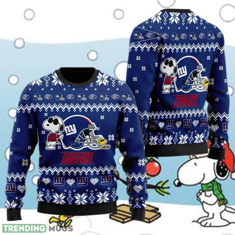 New York Giants Cute The Snoopy Show Football Helmet Ugly Christmas 3D Sweater Angel – New York Giants Cute The Snoopy Show Football Helmet Ugly Christmas 3D Sweater Angel