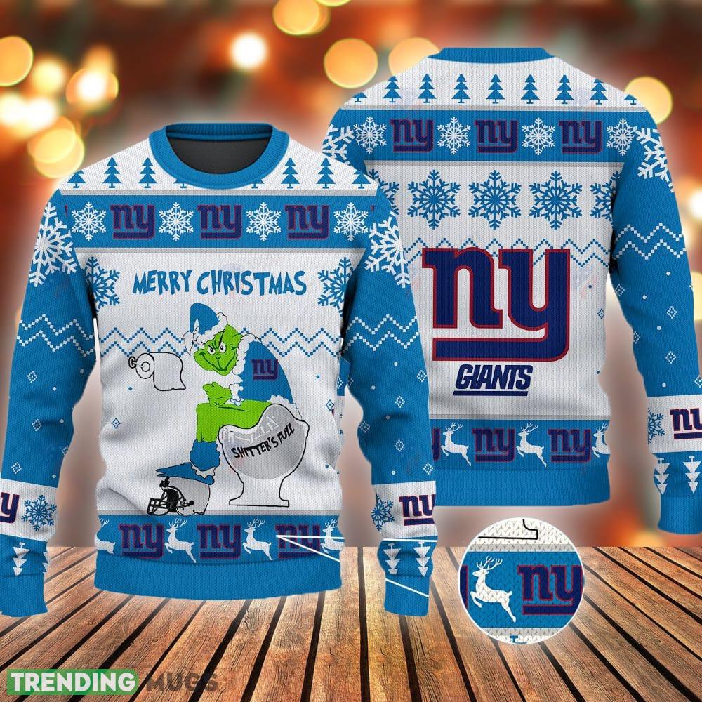 Don’t miss out on this must-have holiday essential! Order your New York Giants Grinch Shitter’s Full NFL Blue Ugly Christmas Sweater today and let your team spirit shine during the most wonderful time of the year.