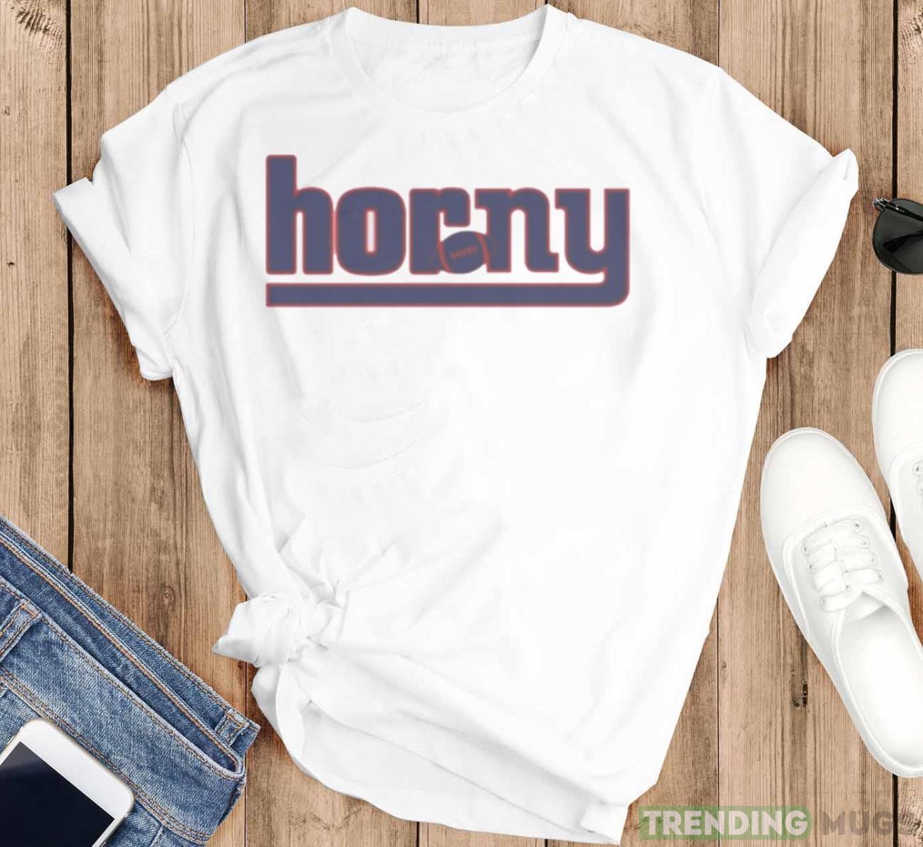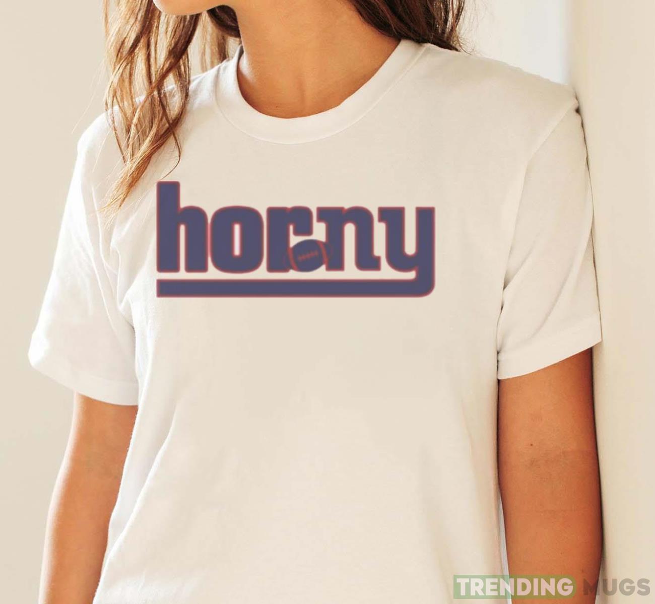 Ideal for both men and women, this shirt is a must-have addition to any fan’s wardrobe. Perfect for game days, tailgating parties, or even casual outings, it effortlessly showcases your love for the New York Giants in a bold and fashionable way. Get ready to turn heads and make a statement with our New York Giants Horny shirt – the ultimate choice for passionate Giants fans like you.