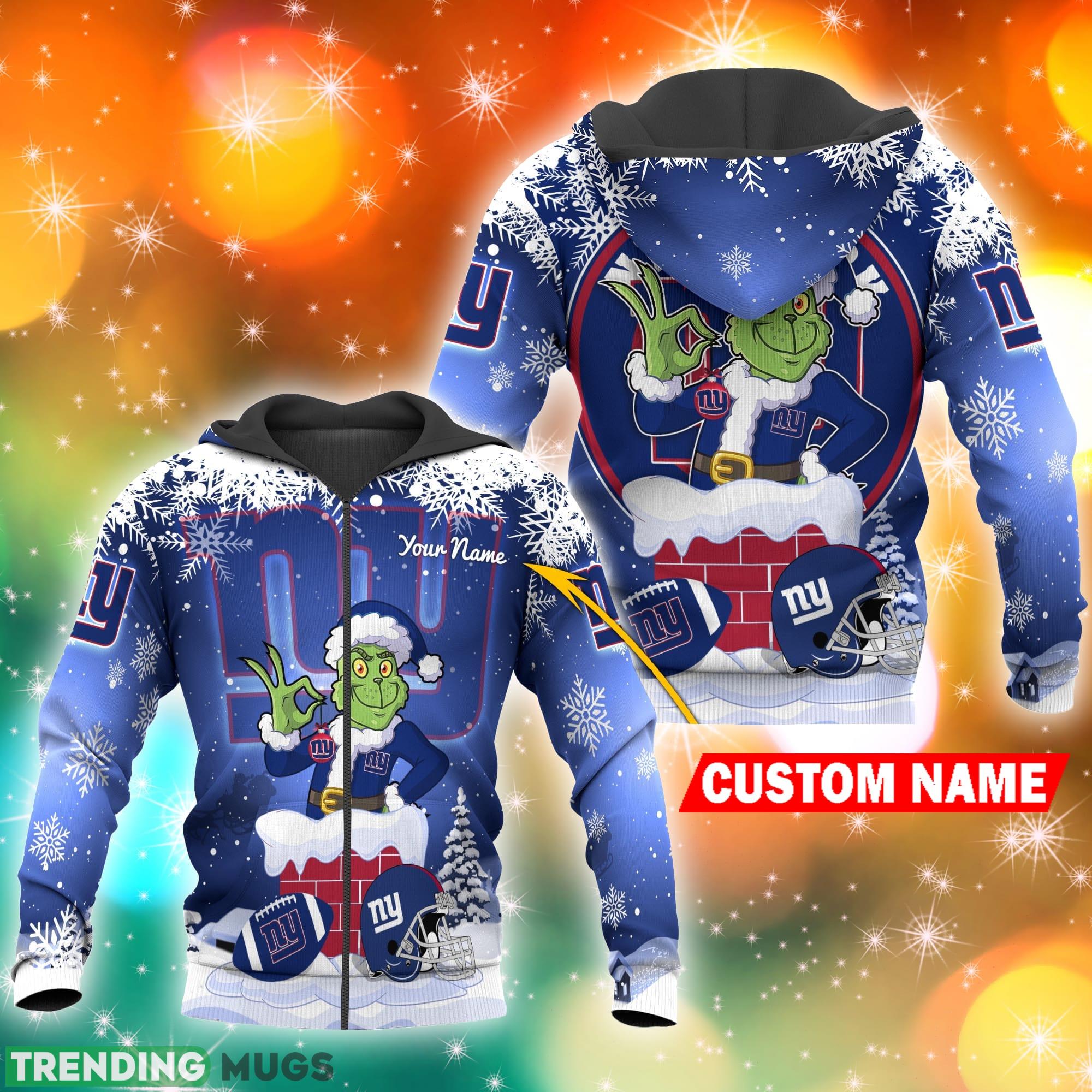 New York Giants NFL Christmas Grinch in Chimney 3D Hoodie Pullover Prints Custom Name