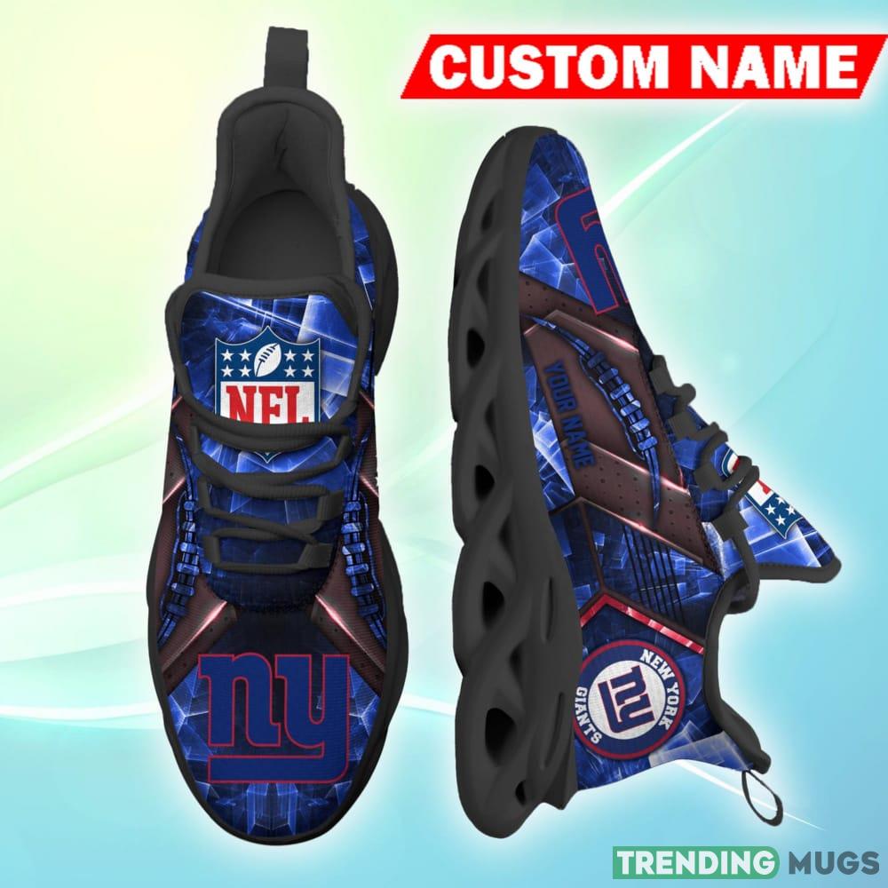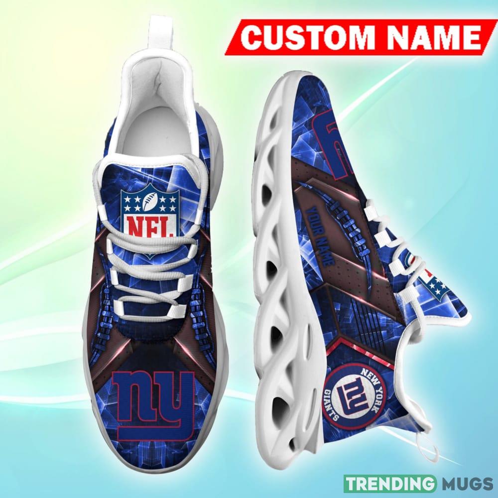 This New York Giants NFL Curate Personalized Chunky Shoes Fans Gift Max Soul Sneakers New For Men And Women is a breathable, lightweight, and comfortable casual outdoor shoe that has a unique design. It is made of a mesh fabric which makes it sweat absorbent and breathable, while the rubber bottom ensures traction, comfort, and durability. It is available in two colors: black or white sole. There are two styles of shoelace holes so you can choose your preference.