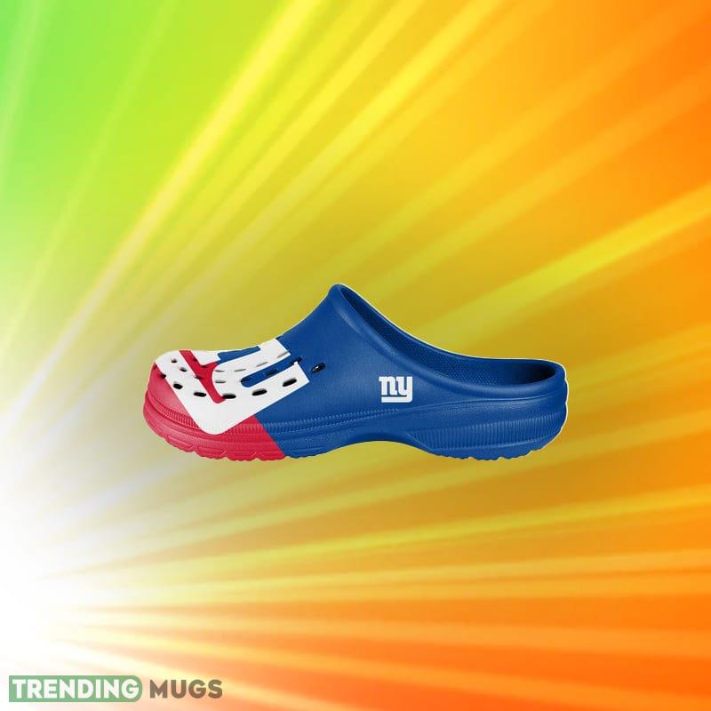 Featuring the iconic New York Giants logo prominently displayed on the front, these clog shoes are a must-have for any true blue Giants fan. The colorblock design adds a touch of modern flair, while the comfortable cushioned footbed ensures that your feet stay happy all day long.