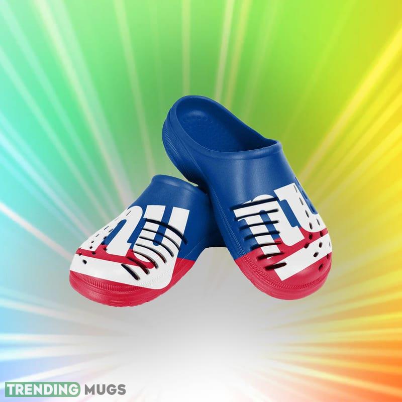 Some of the New York Giants NFL Men And Women Colorblock Big Logo Clog Shoes For Fans photos