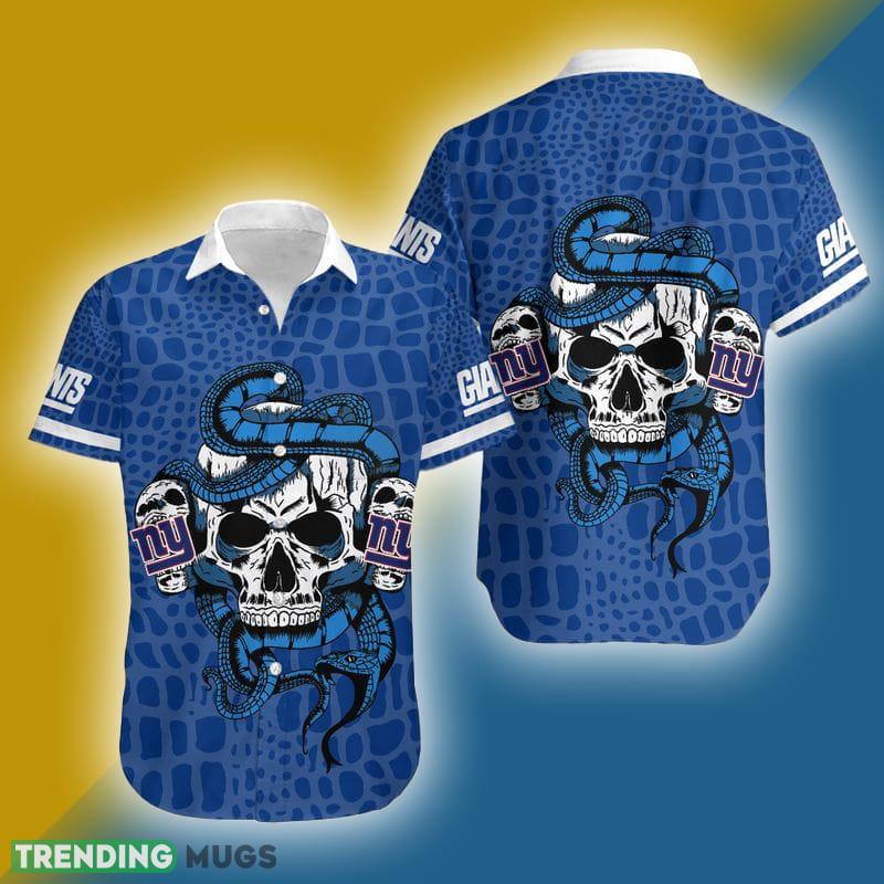 Get your hands on this one-of-a-kind shirt today and experience the ultimate blend of sporty spirit and Halloween flair. Hurry and order your New York Giants Snake And Skull Octopus Hawaiian Shirt now to make a lasting impression this Halloween season!