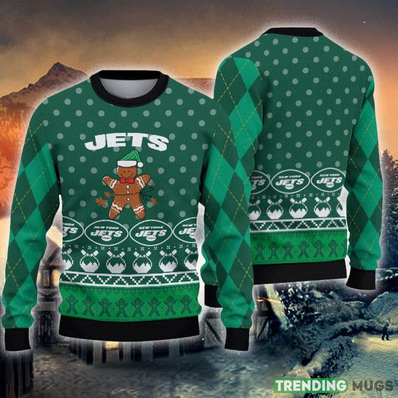 New York Jets Christmas Gingerbread Man Knitted Ugly Christmas Sweater AOP Gift For Men And Women Informations: