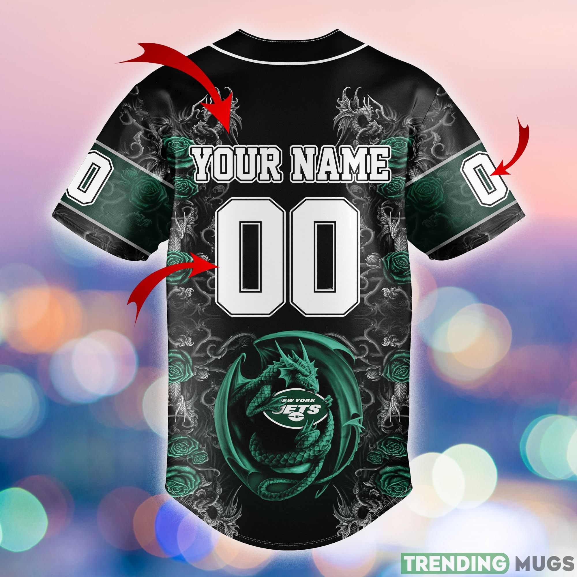 New York Jets Design Custom Number And Name NFL Dragon Jersey Shirt Gift For Fans