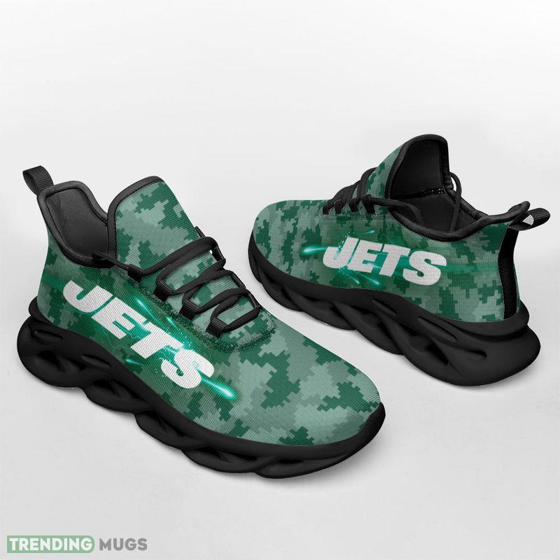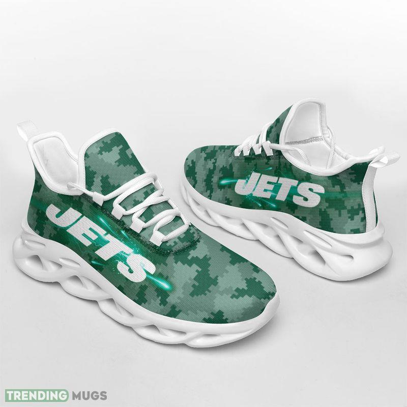 Say goodbye to boring footwear and step into the world of fashion-forward sneakers with the New York Jets Knitted Camouflage Max Soul Shoes Stride Chunky Sneakers. Embrace your love for the Jets while enjoying the utmost comfort and style. Take your outfit to the next level and let your shoes do the talking – order your pair today and make a bold statement wherever you go.