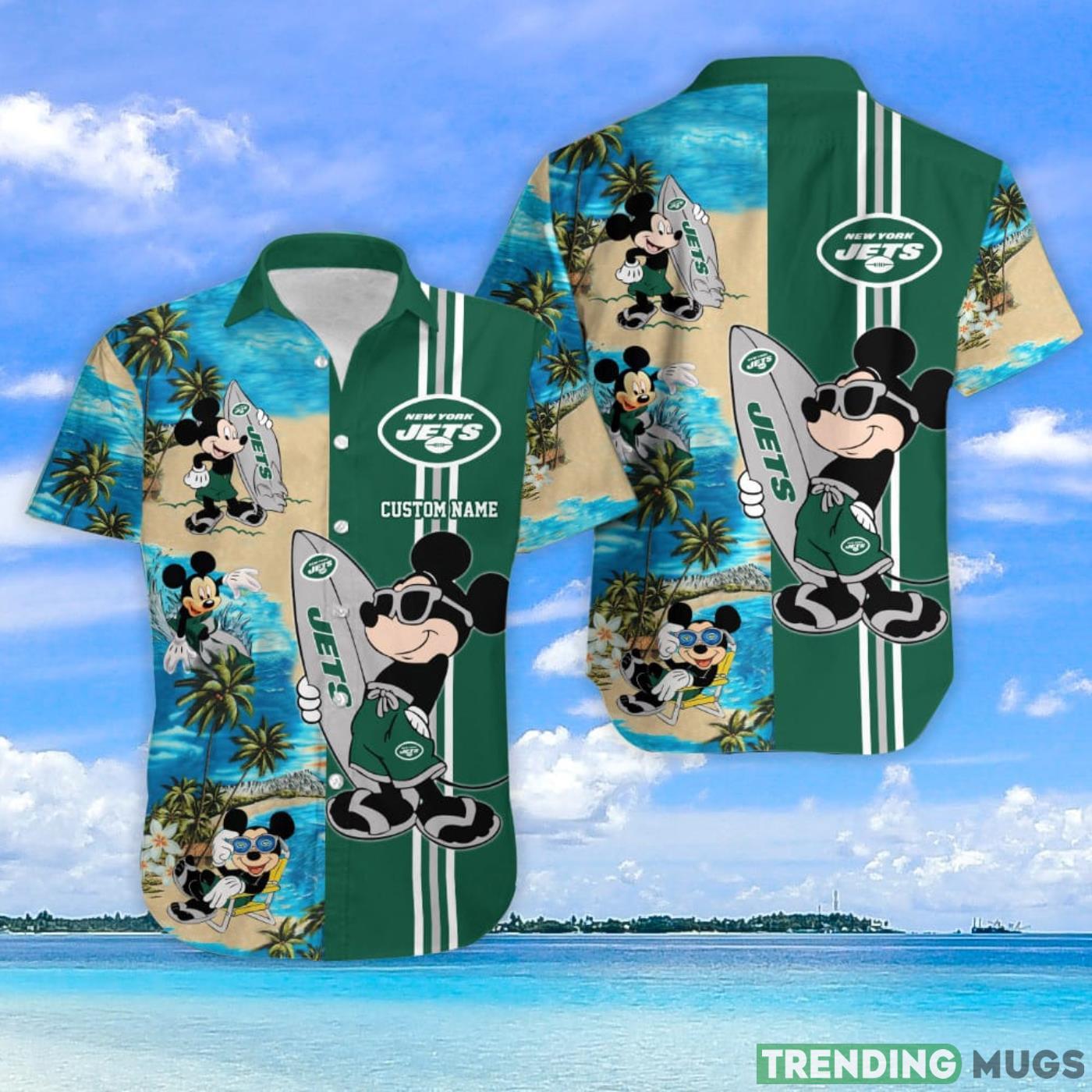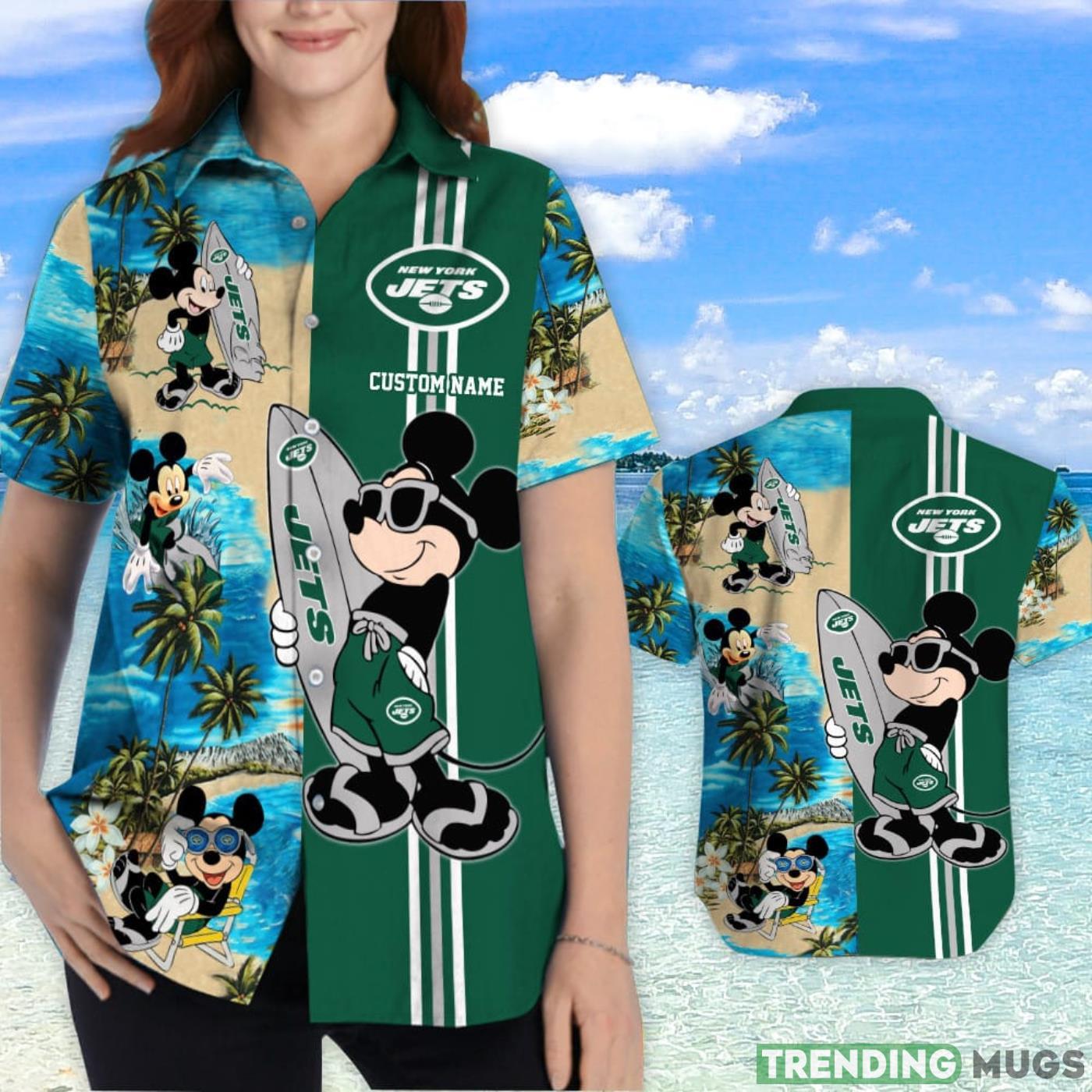 New York Jets Mickey Surfing Lover Custom Name Hawaiian Shirt Details: