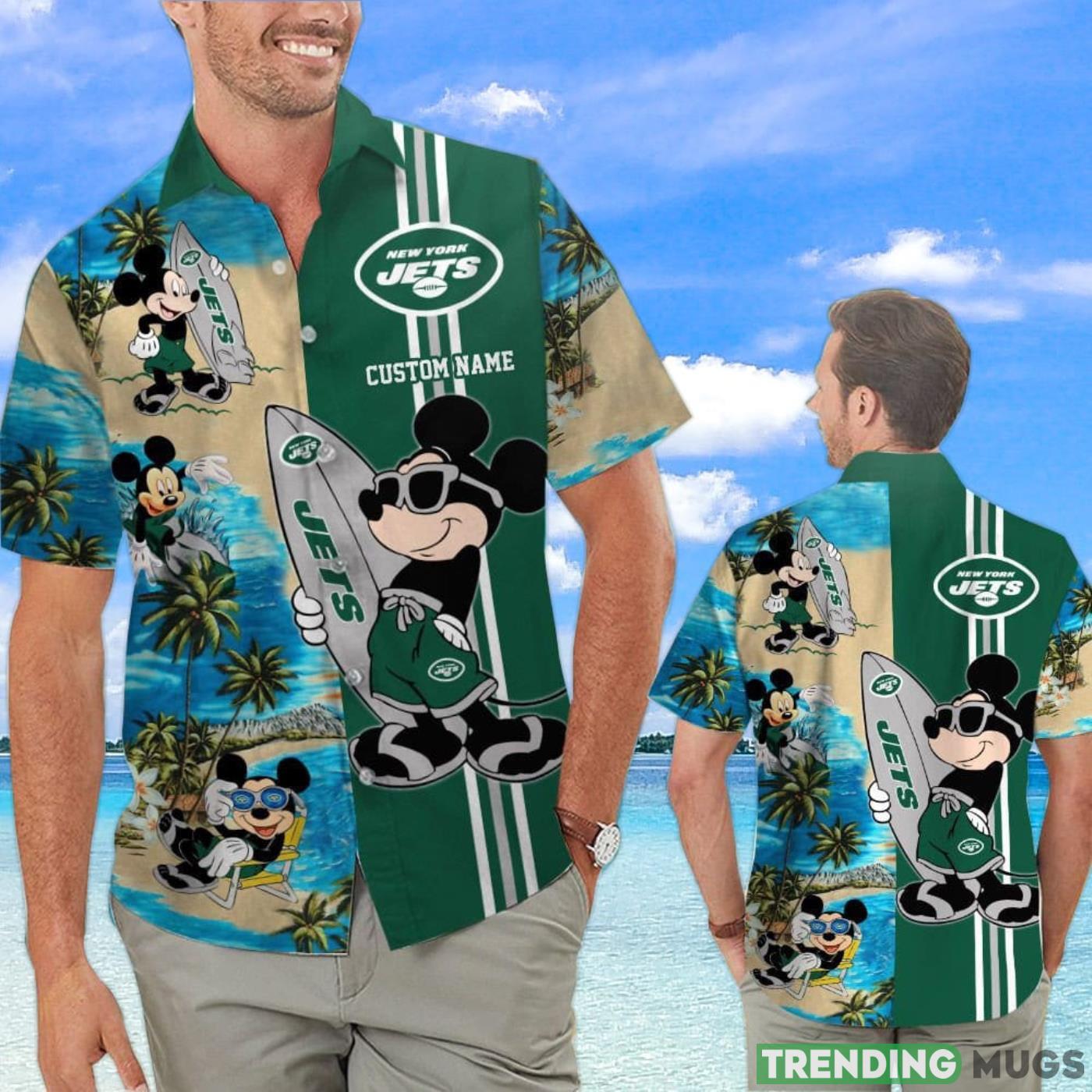 Looking for a way to show your support for the New York Jets while also having some fun in the sun? This Hawaiian shirt featuring Mickey Surfing Lover is perfect for you! With a custom name option, you can personalize this shirt to show your unique fandom. Whether you’re hitting the beach or just enjoying a summer BBQ, this shirt is sure to turn heads and get you some laughs. So grab one today and let everyone know who you’re rooting for come fall!