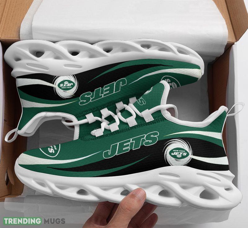 This New York Jets Wavy Pattern Max Soul Shoes Edgy Running Sneakers is a breathable, lightweight, and comfortable casual outdoor shoe that has a unique design. It is made of a mesh fabric which makes it sweat absorbent and breathable, while the rubber bottom ensures traction, comfort, and durability. It is available in two colors: black or white sole. There are two styles of shoelace holes so you can choose your preference.