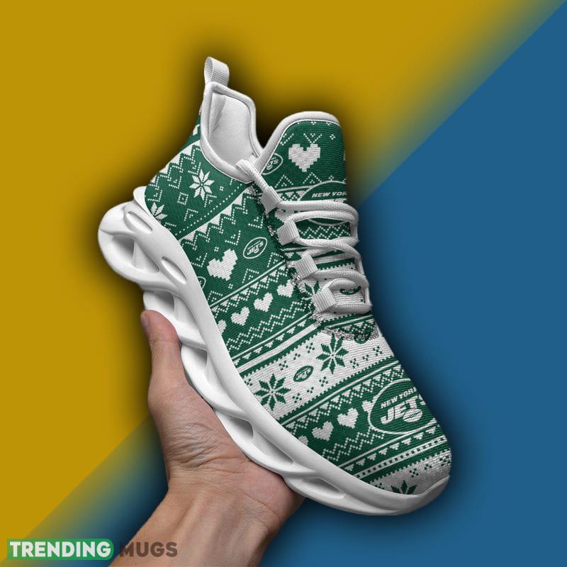 This New York Jets X-max Patterns Max Soul Shoes Trendy Christmas Sneakers is a breathable, lightweight, and comfortable casual outdoor shoe that has a unique design. It is made of a mesh fabric which makes it sweat absorbent and breathable, while the rubber bottom ensures traction, comfort, and durability. It is available in two colors: black or white sole. There are two styles of shoelace holes so you can choose your preference.