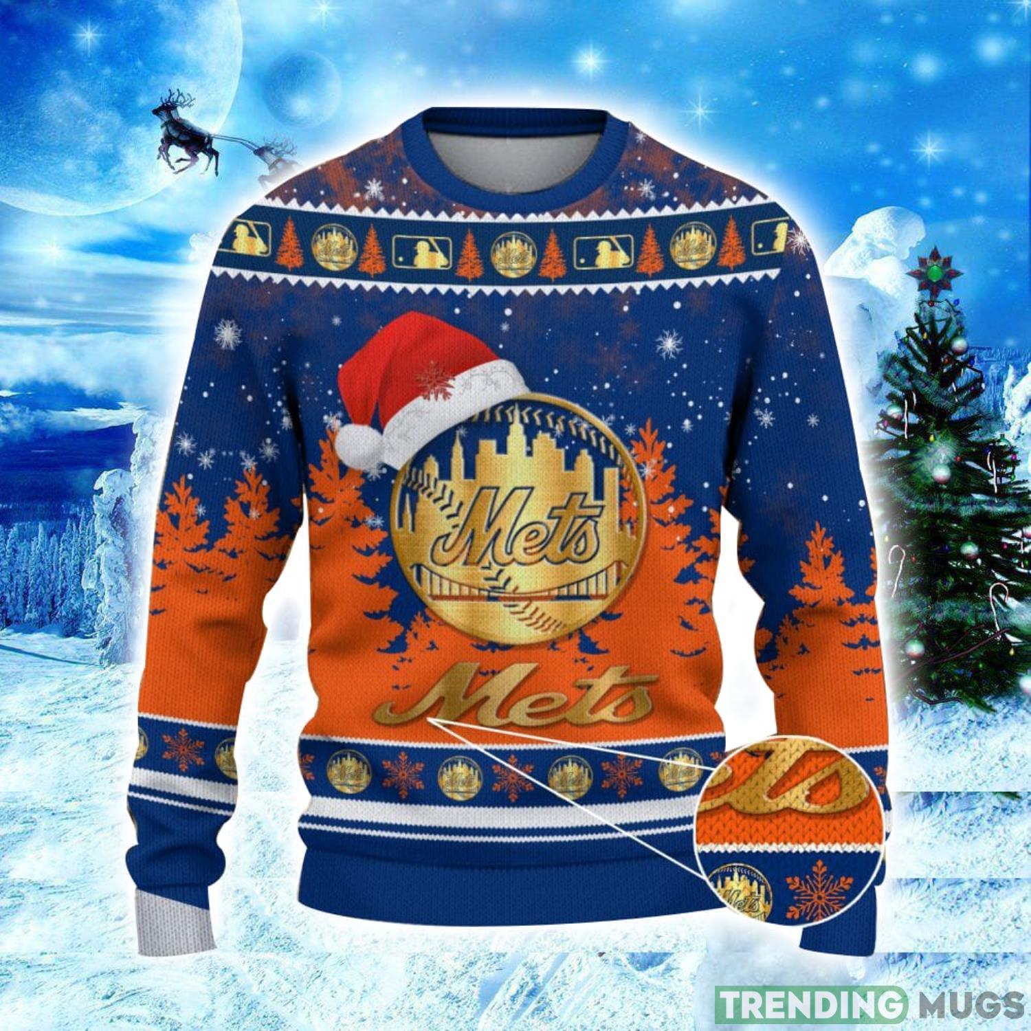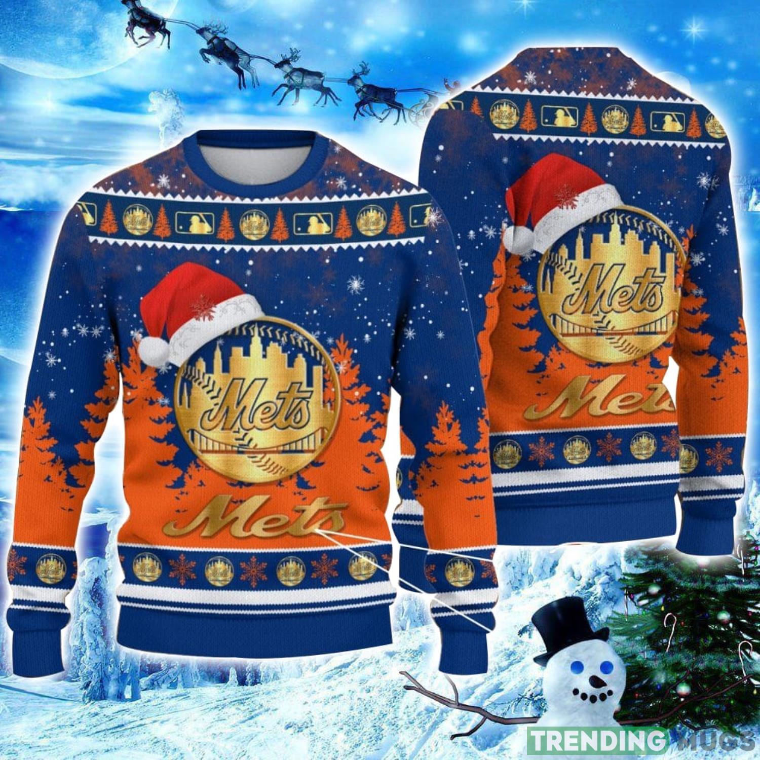 New York Mets Logo Wearing Santa Hat Christmas Gift Ugly Christmas Sweater Christmas Gift Ideas Product Photo 1