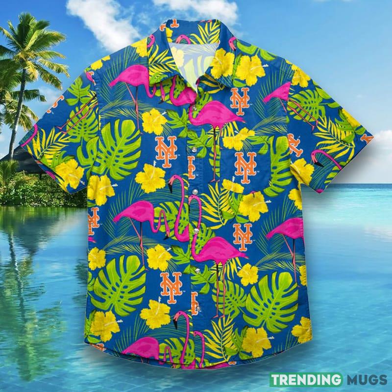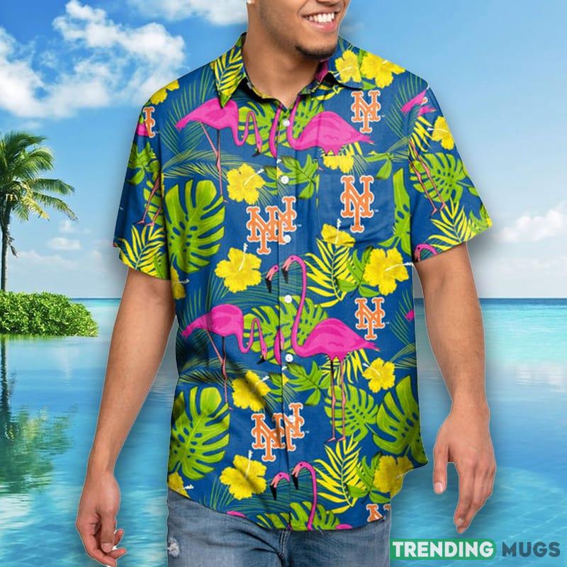 Featuring a vibrant blue and orange design with the Mets logo prominently displayed on the front, this Hawaiian shirt is sure to turn heads. The shirt is made from high-quality materials that are lightweight and breathable, making it comfortable to wear even on the hottest days.