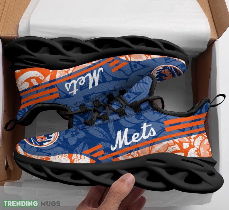 This New York Mets Tropical Flowers Max Soul Shoes Athleisure Sport Sneakers is a breathable, lightweight, and comfortable casual outdoor shoe that has a unique design. It is made of a mesh fabric which makes it sweat absorbent and breathable, while the rubber bottom ensures traction, comfort, and durability. It is available in two colors: black or white sole. There are two styles of shoelace holes so you can choose your preference.
