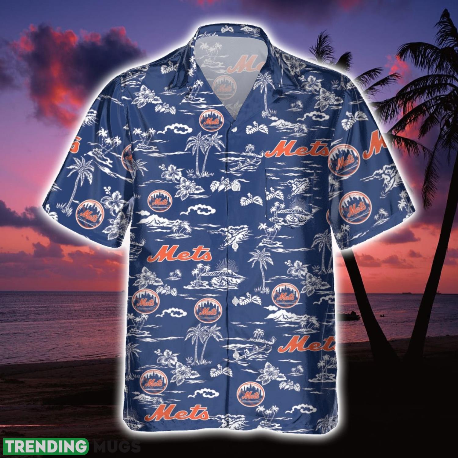 New York Mets Vintage Coconut Beach Pattern Hawaiian Shirt 3D All Over Printed Details: