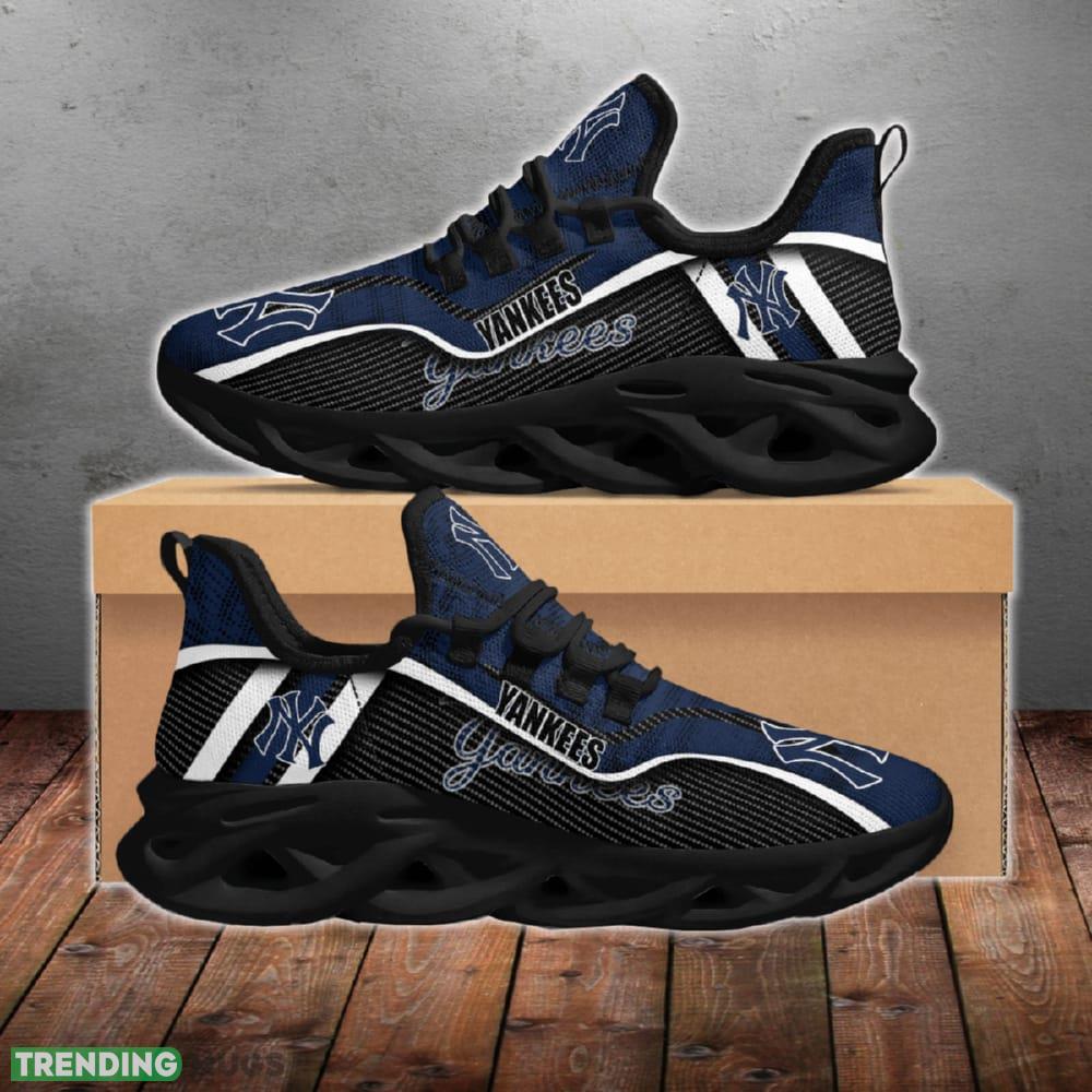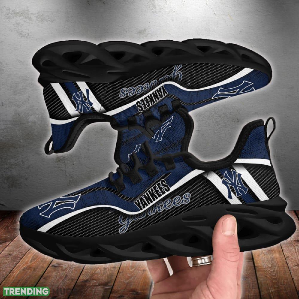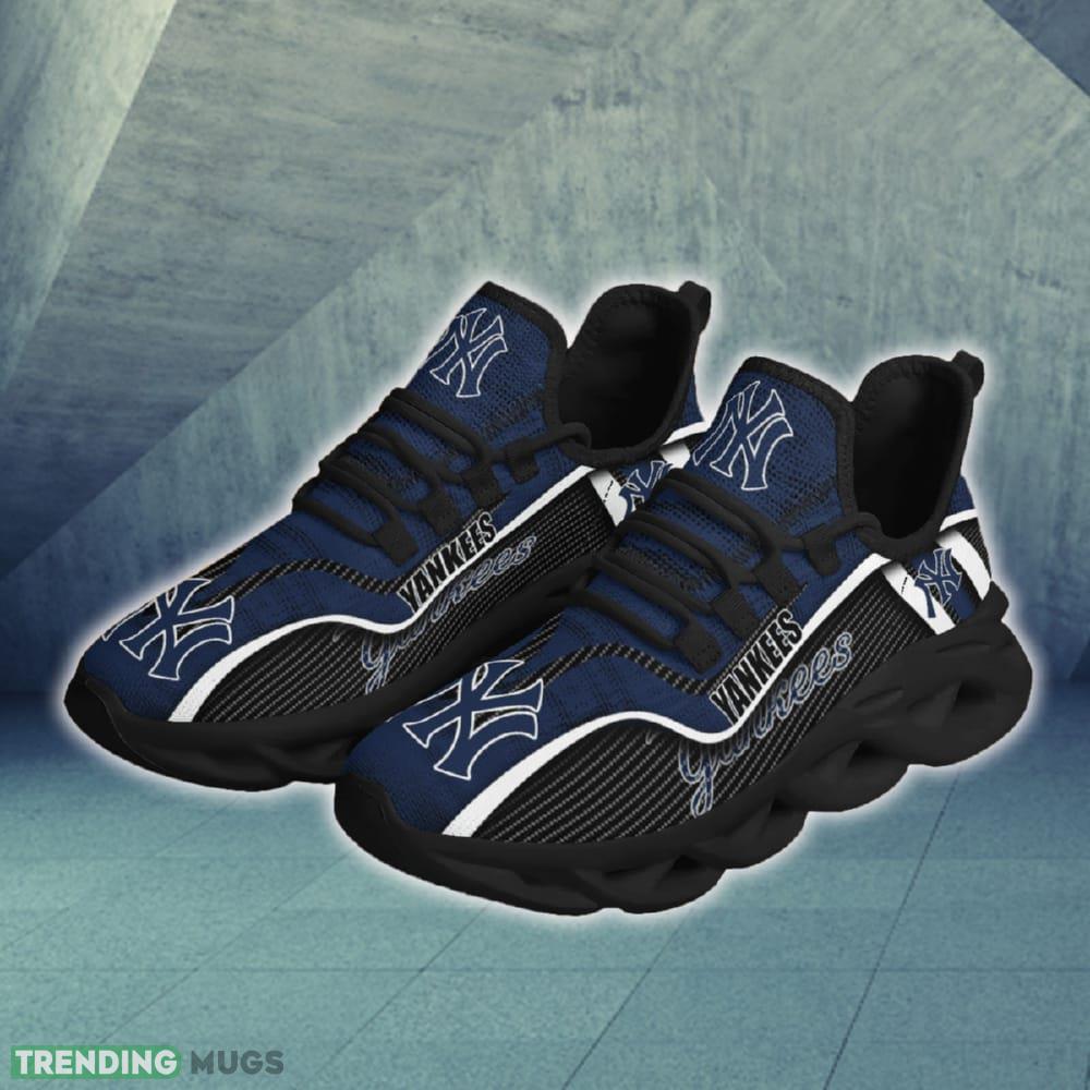 This New York Yankees Jumpstart Badge Chunky Shoes New Max Soul Sneakers Men Gift is a breathable, lightweight, and comfortable casual outdoor shoe that has a unique design. It is made of a mesh fabric which makes it sweat absorbent and breathable, while the rubber bottom ensures traction, comfort, and durability. It is available in two colors: black or white sole. There are two styles of shoelace holes so you can choose your preference.