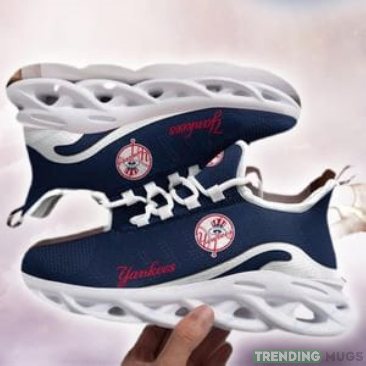 This New York Yankees Limited Edition Max For Fans is a breathable, lightweight, and comfortable casual outdoor shoe that has a unique design. It is made of a mesh fabric which makes it sweat absorbent and breathable, while the rubber bottom ensures traction, comfort, and durability. It is available in two colors: black or white sole. There are two styles of shoelace holes so you can choose your preference.