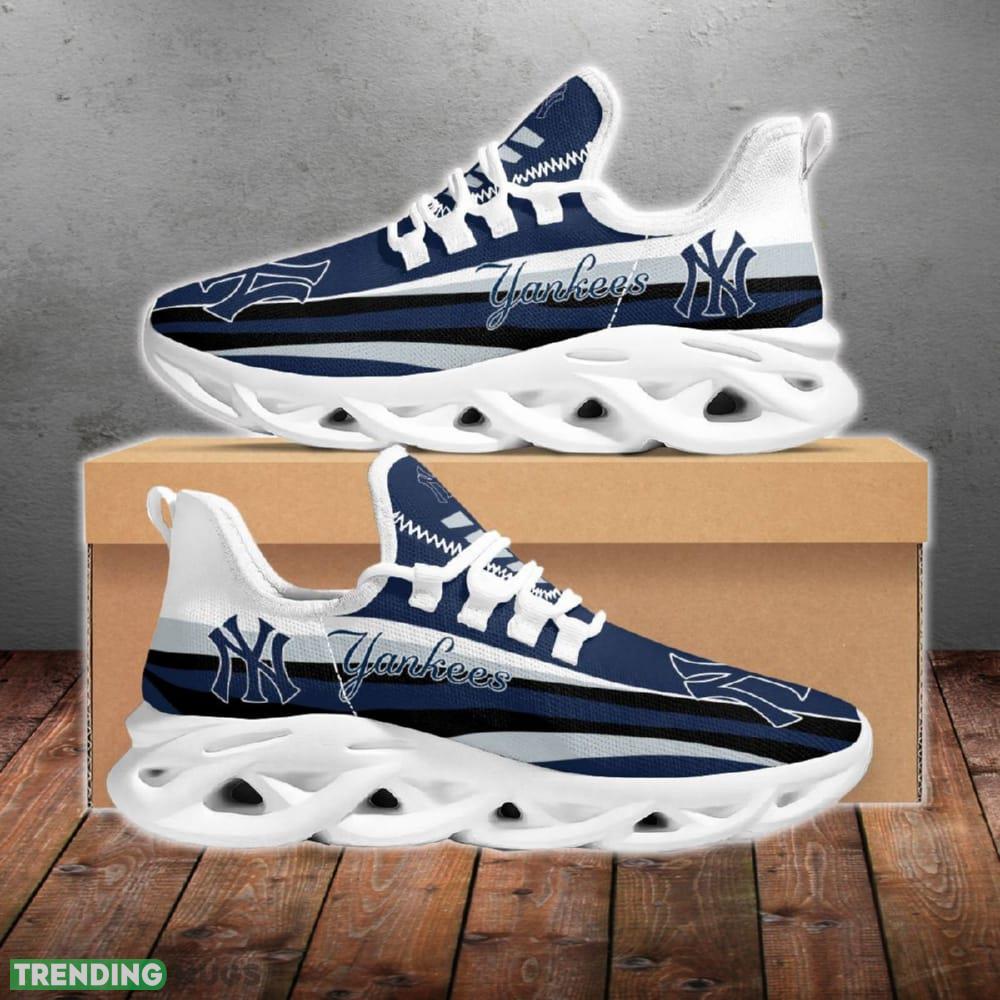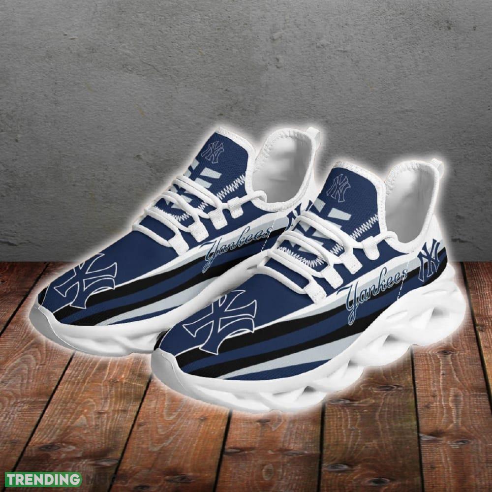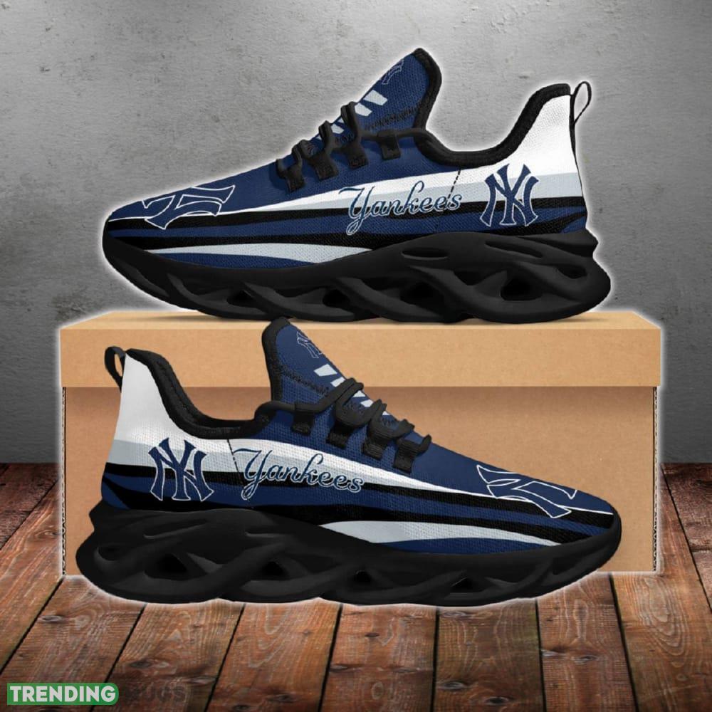 This New York Yankees Representation Chunky Shoes New Max Soul Sneakers Men Gift is a breathable, lightweight, and comfortable casual outdoor shoe that has a unique design. It is made of a mesh fabric which makes it sweat absorbent and breathable, while the rubber bottom ensures traction, comfort, and durability. It is available in two colors: black or white sole. There are two styles of shoelace holes so you can choose your preference.