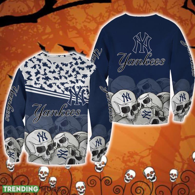 Featuring a unique and eye-catching design, this sweater showcases the iconic New York Yankees logo with a spooky twist of skulls and a vibrant red color. The combination of the team spirit and Halloween elements creates a one-of-a-kind look that is sure to turn heads wherever you go.