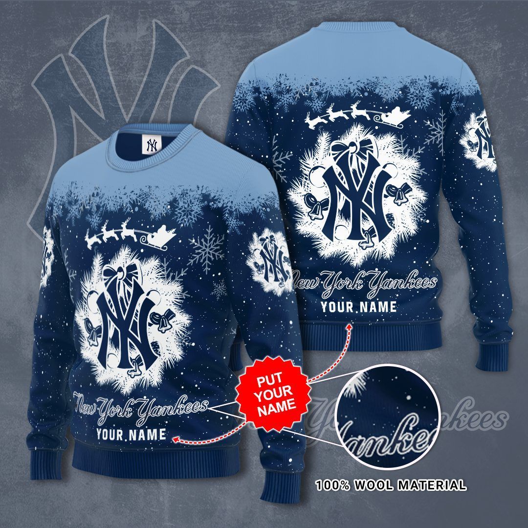 New York Yankees Snow Christmas Custom Ugly Christmas Sweater All Over Print Sweatshirt Ugly Sweater 1 Custom Name Gift For Christmas 3D Sweater