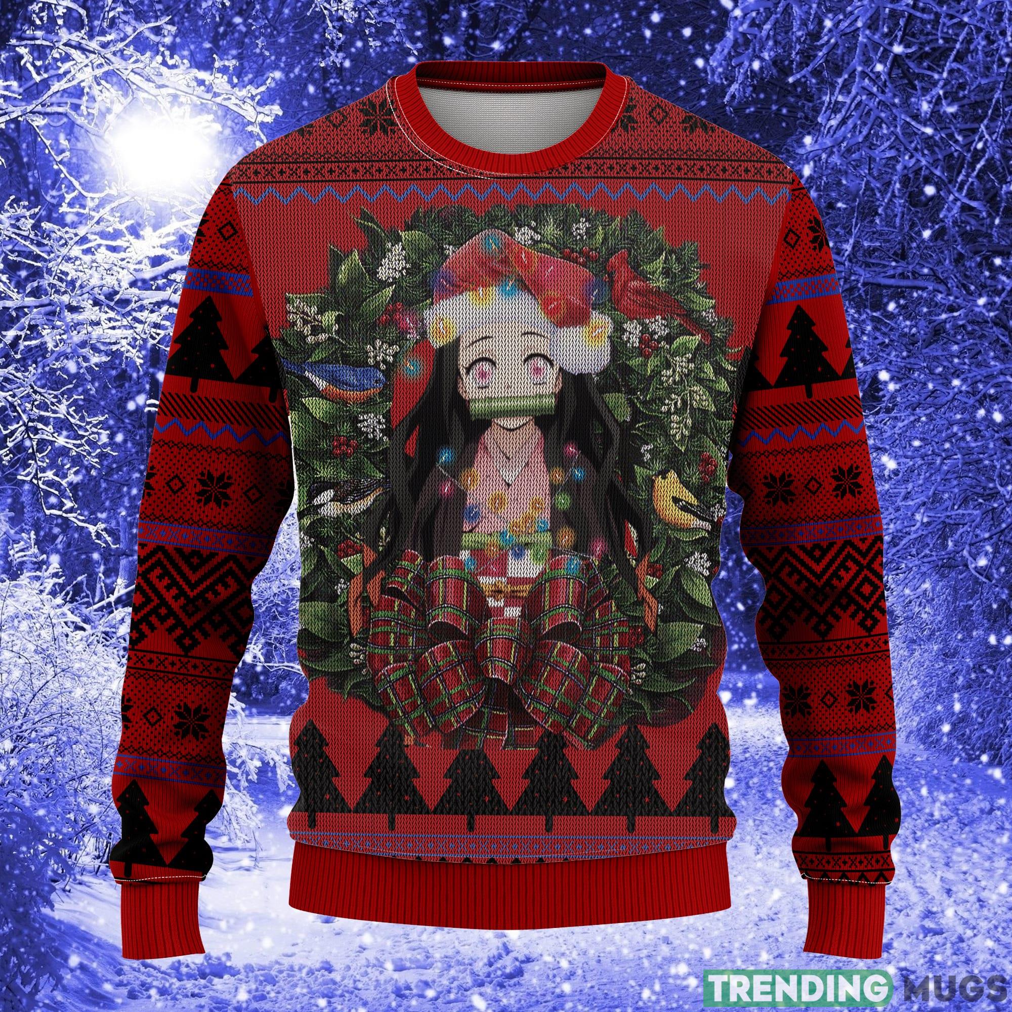 Crafted with utmost care and attention to detail, this sweater features a unique design that combines elements from Nezuko Kimesu No Yaiba and the holiday season. The vibrant colors and intricate patterns make it a standout piece that is sure to turn heads at any gathering or party.