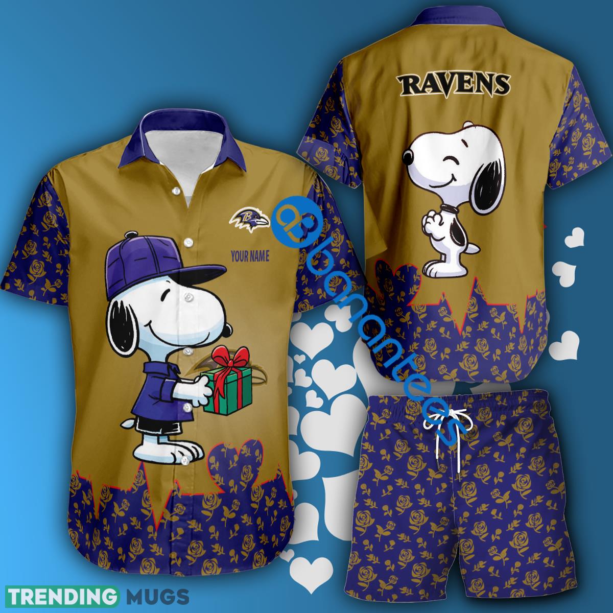 NFL Baltimore Ravens Snoopy Gift Boyfriend And Girlfriend Combo Hawaiian Shirt And Short Custom Name - NFL Baltimore Ravens Snoopy Gift Boyfriend And Girlfriend Combo Hawaiian Shirt And Short Custom Name