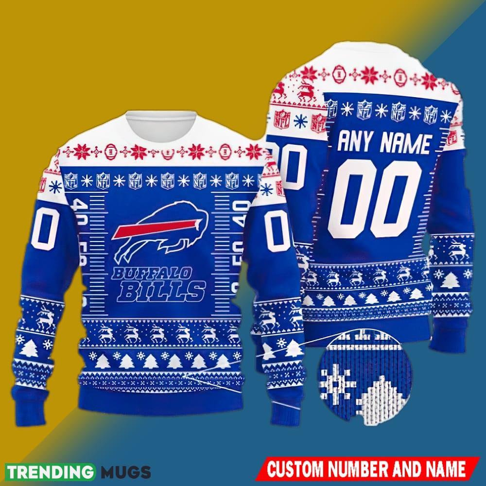 What makes this sweater truly special is the ability to customize it with your own number and name. Whether it’s your favorite player’s number or your own lucky number, you can proudly display it on the back of this sweater. Imagine the envy of your friends and family as you showcase your personalized Buffalo Bills gear at holiday parties and gatherings.
