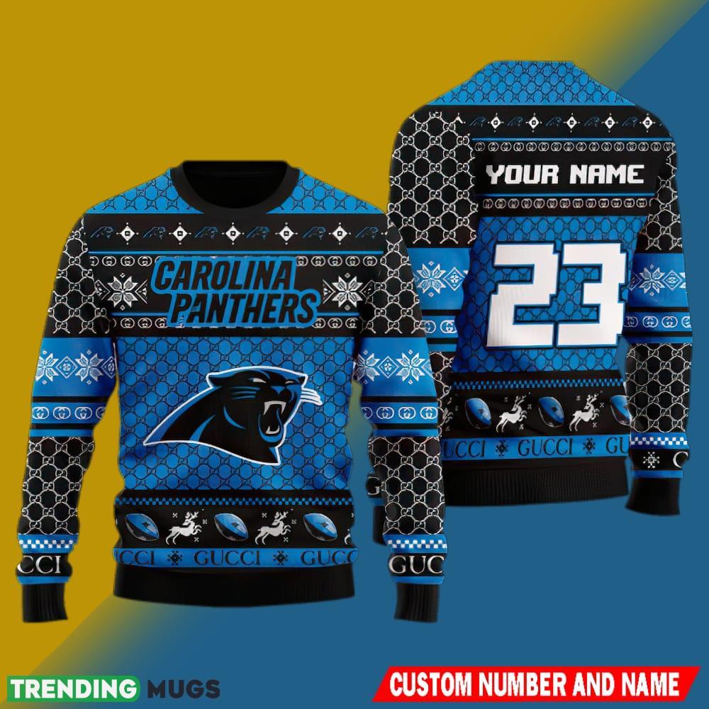NFL Carolina Panthers Christmas Woven 3D Ugly Sweater Custom Number And Name Informations:
