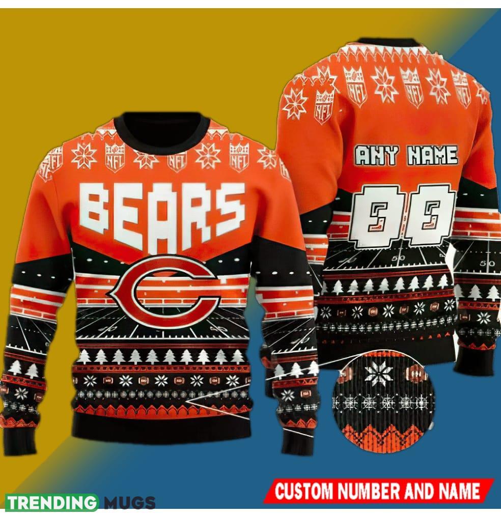 NFL Chicago Bears Christmas Embroider AOP Knitted Sweater Custom Number And Name Informations: