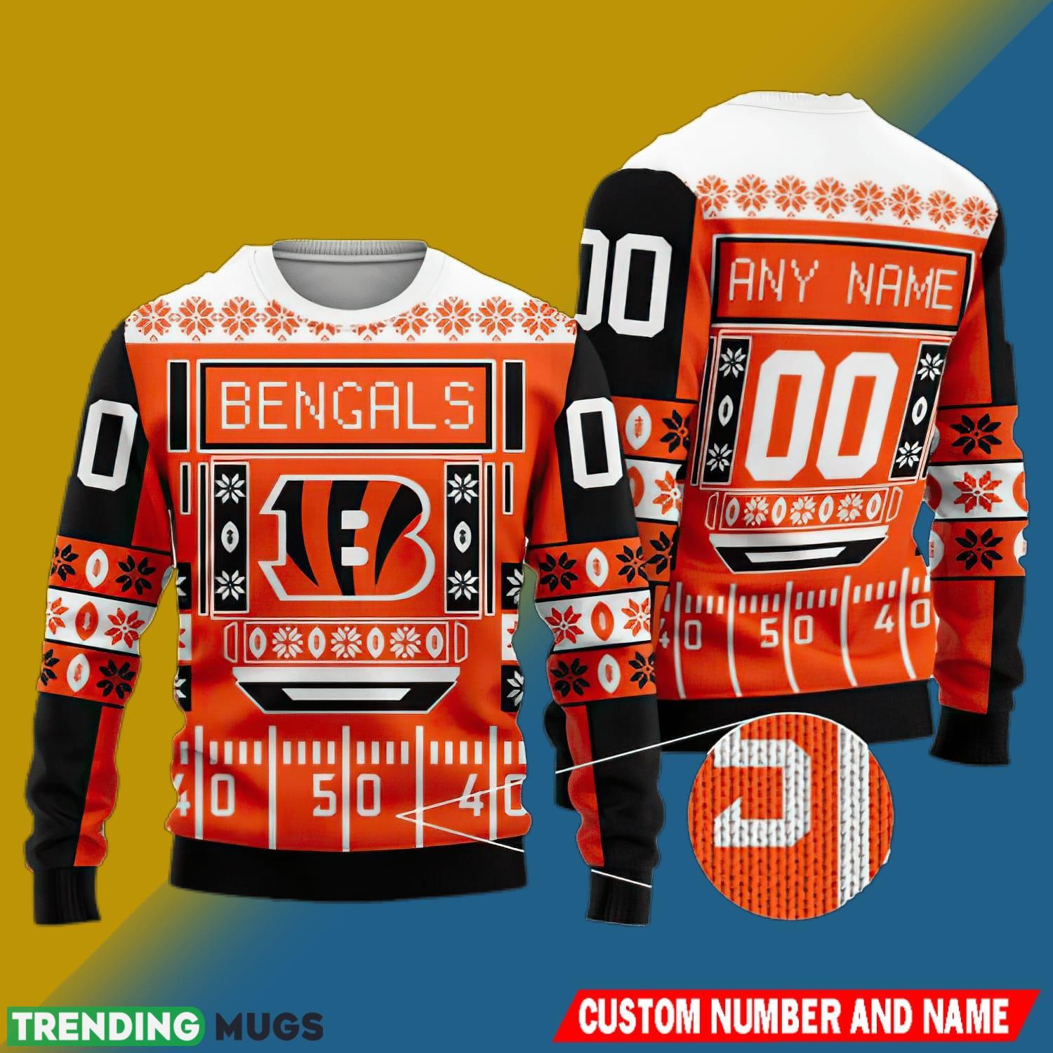 NFL Cincinnati Bengals Christmas Casual AOP Ugly Sweater Custom Number And Name Informations: